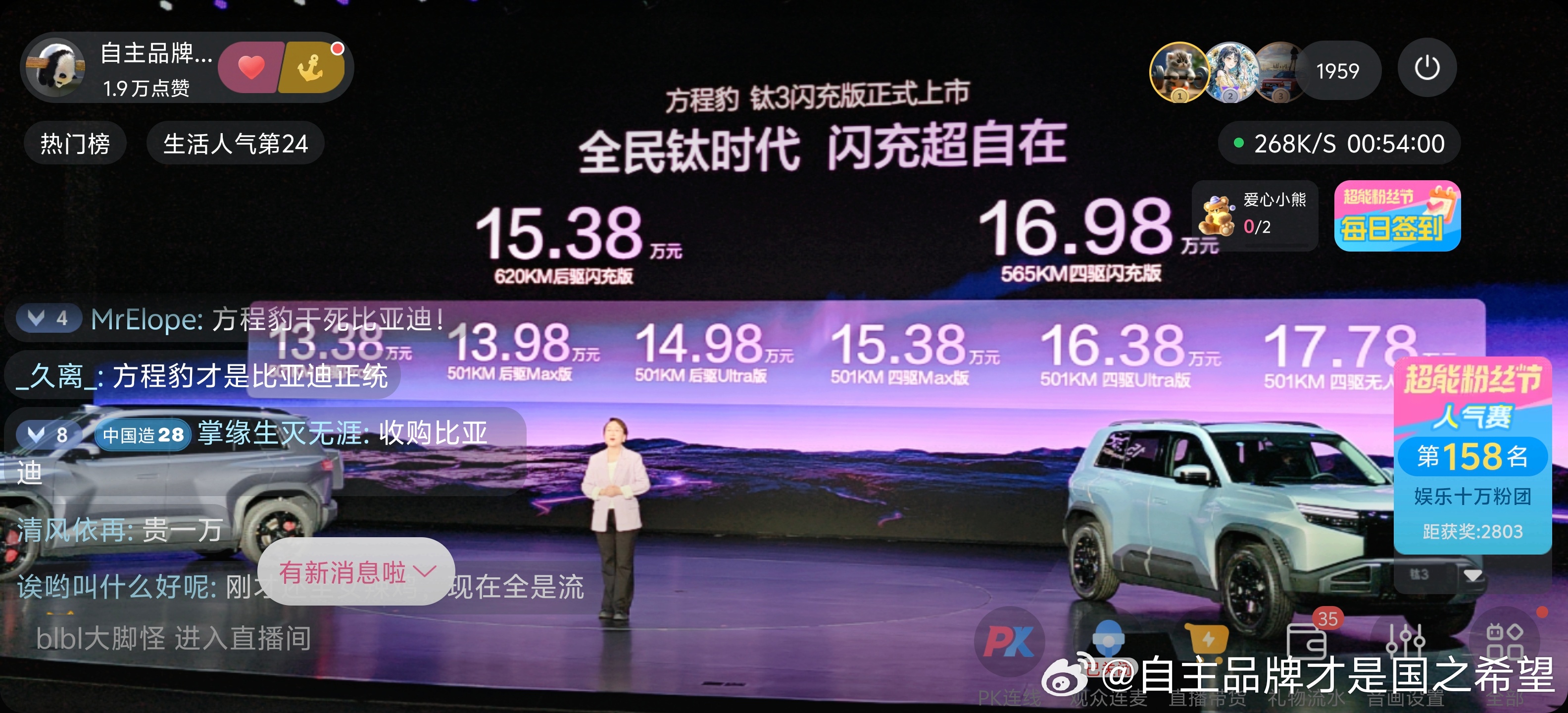 直播间2000人,气氛非常热烈但是15.38这个价格还是出乎很多人意料竟然比王朝海洋还便宜至于钛7 ev 22~25开启预售,反倒大家都猜的差不多