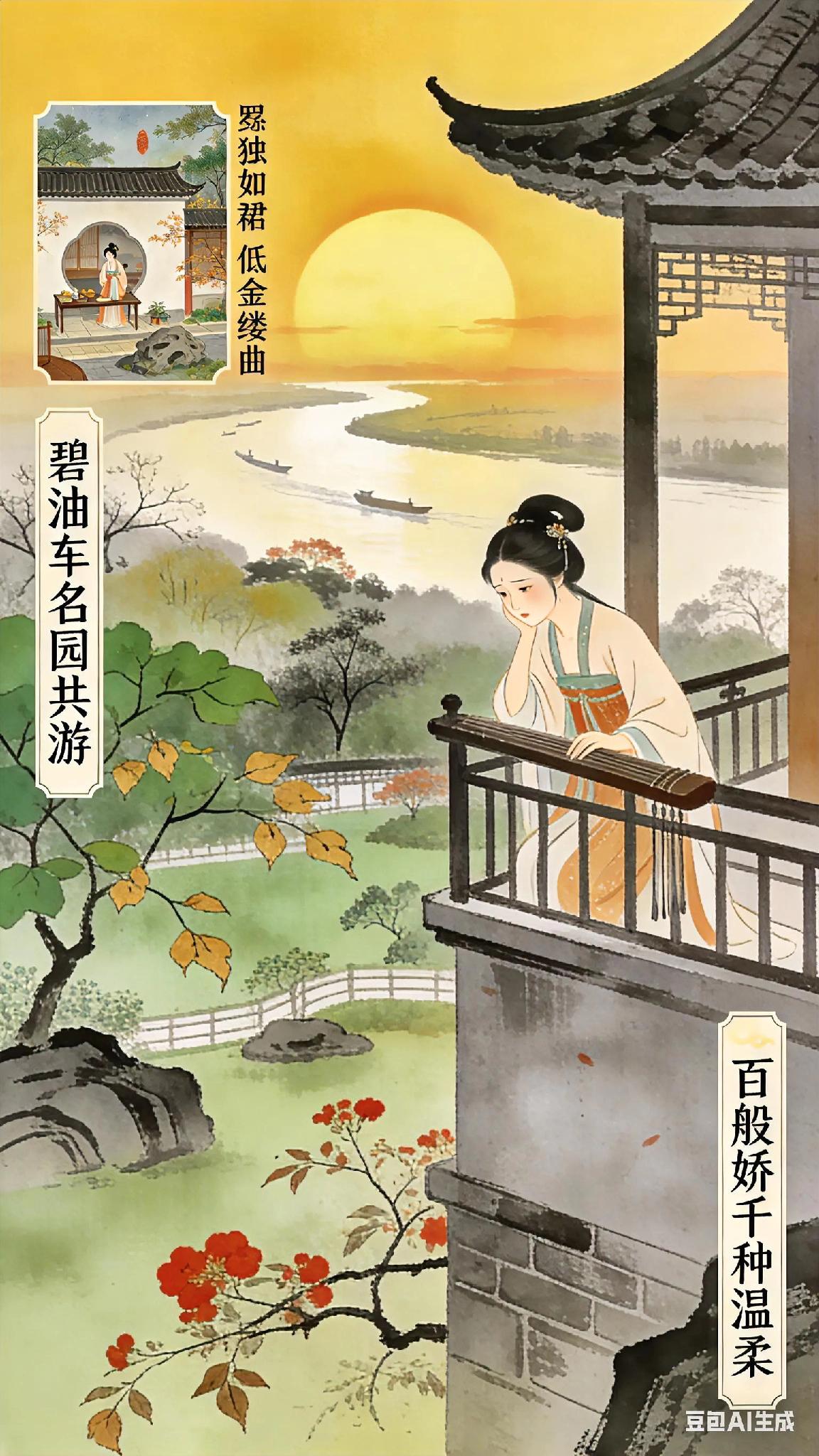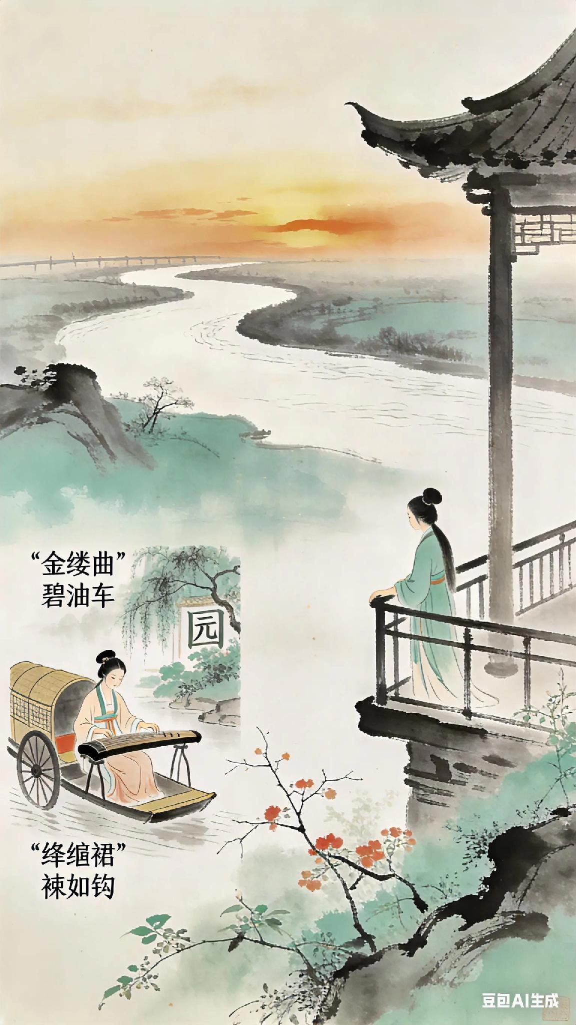 《双调》水仙子、倪瓒。 吹箫声断更登楼, 独自凭栏独自愁。 斜阳绿惨红消瘦, 长江日际流。 百般娇千种温柔。 《金缕曲》新声低按, 碧油车名园共游, 绛绡裙罗袜如钩。 《水仙子》现译: 夕阳西沉时,我听见呜咽的箫声戛然而止。 独自登上高楼倚栏远望,只见江面浮光跃金,两岸草木褪去鲜妍。 江水向着天际奔涌,像那些消散在风中的温柔絮语。 忽然想起春日与你同游的时光——新谱的《金缕曲》在指尖流转,油壁香车穿过名园,你绛红纱裙下露出一弯新月般的罗袜。 此刻暮色四合,所有绮丽都化作绵长的孤寂。 古诗词 你记得最深的一首古诗词是什么 你最喜欢的一句古诗词是什么 花影诗 古典爱情词 半阙闲诗 临江仙·书斋记 武陵春词牌 浮生词 西江月·渔父词