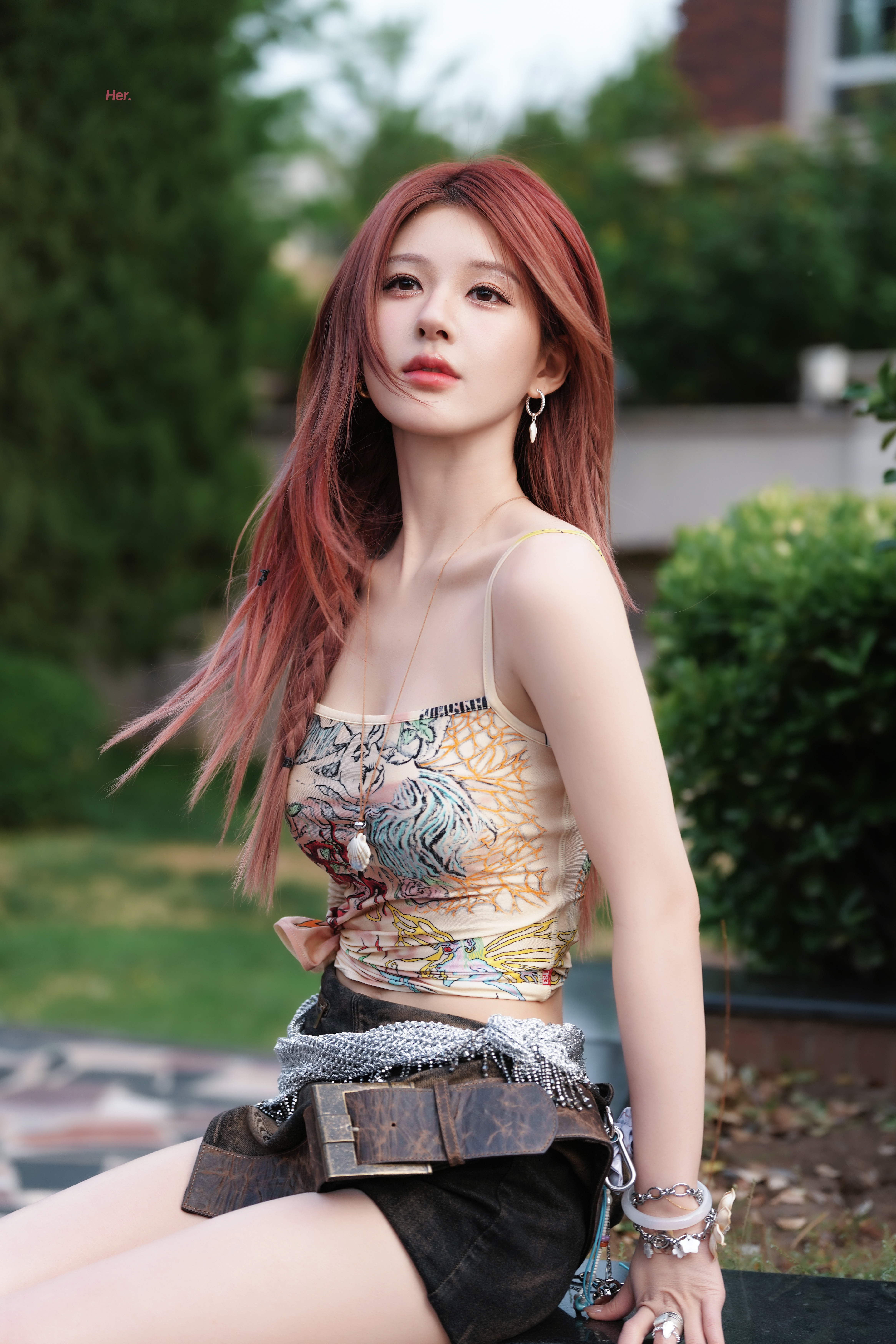 刘亦菲这条裤子挺养生,毕竟降温了肚脐眼必须护住啊