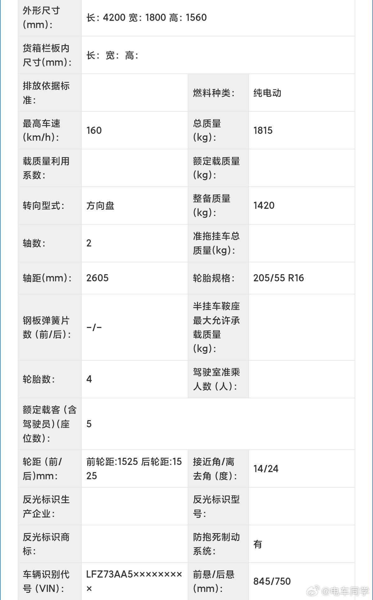 工信部申报,零跑 A05也来了4200*1800*1560mm,2605mm的轴距,90kW 的驱动电机