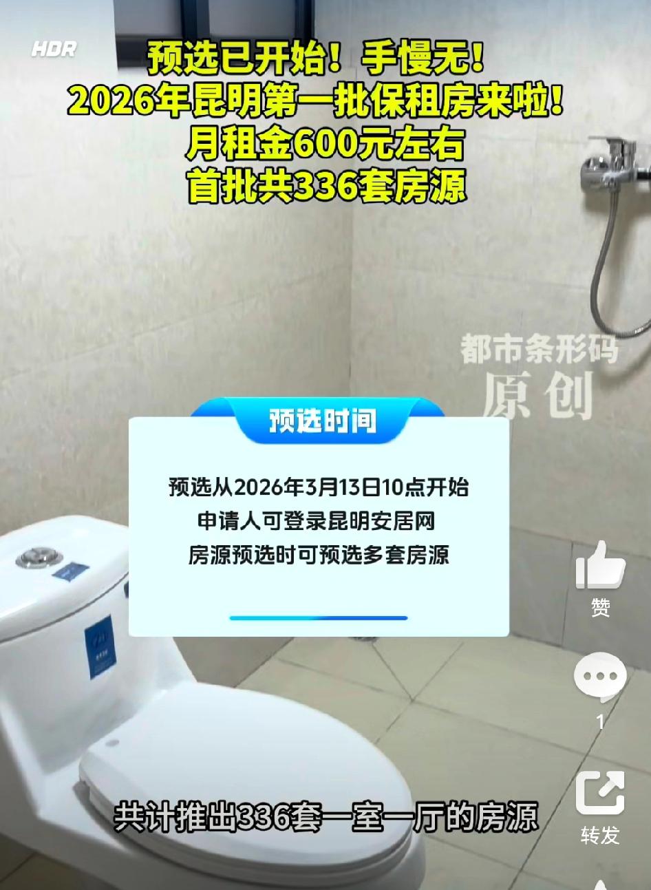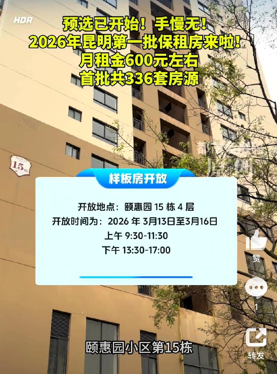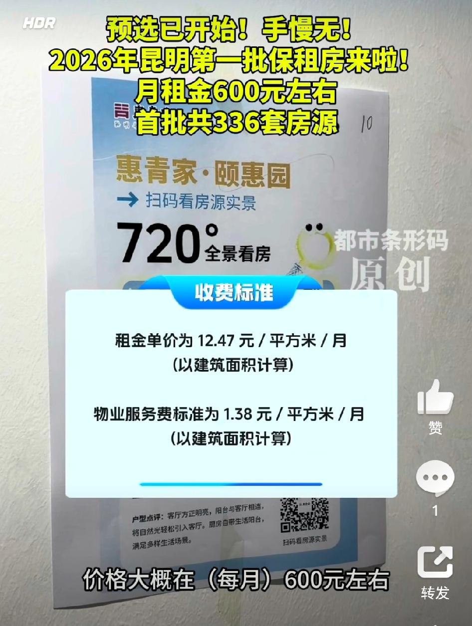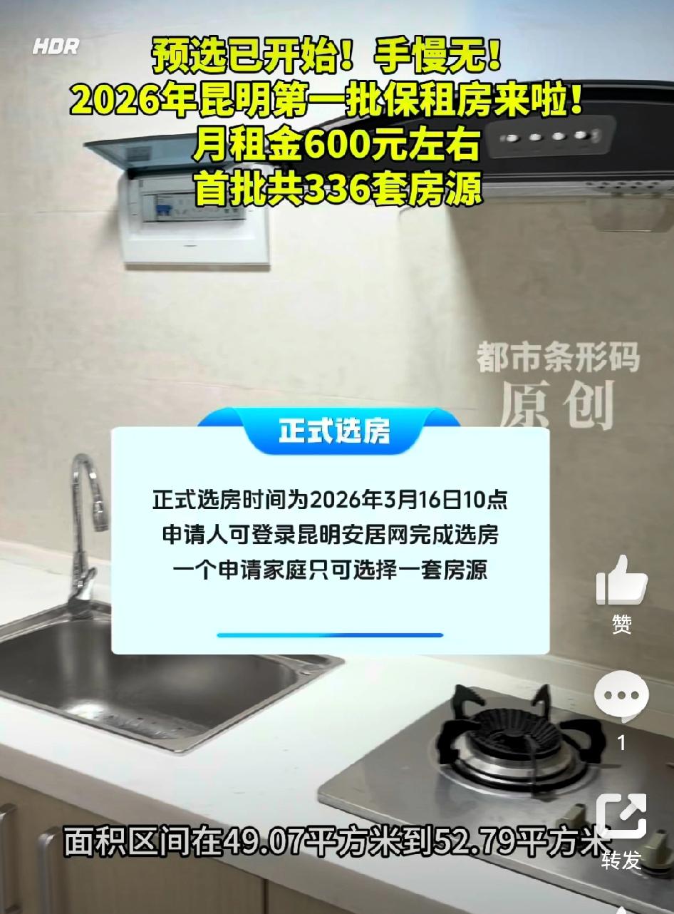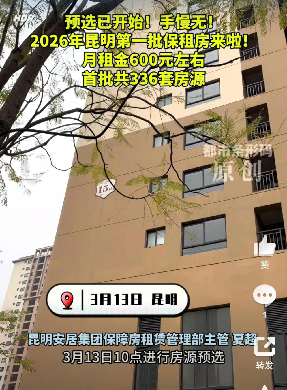 【预选已开始!手慢无!2026年昆明第一批保租房来啦!月租金600元左右首批共