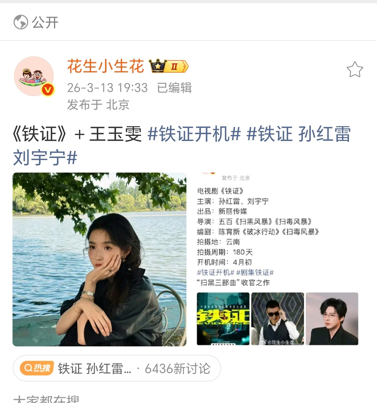 铁证 孙红雷刘宇宁看来确实鹅要力捧王玉雯了,之前说战争和人是她,现在花生说铁证也是王玉雯