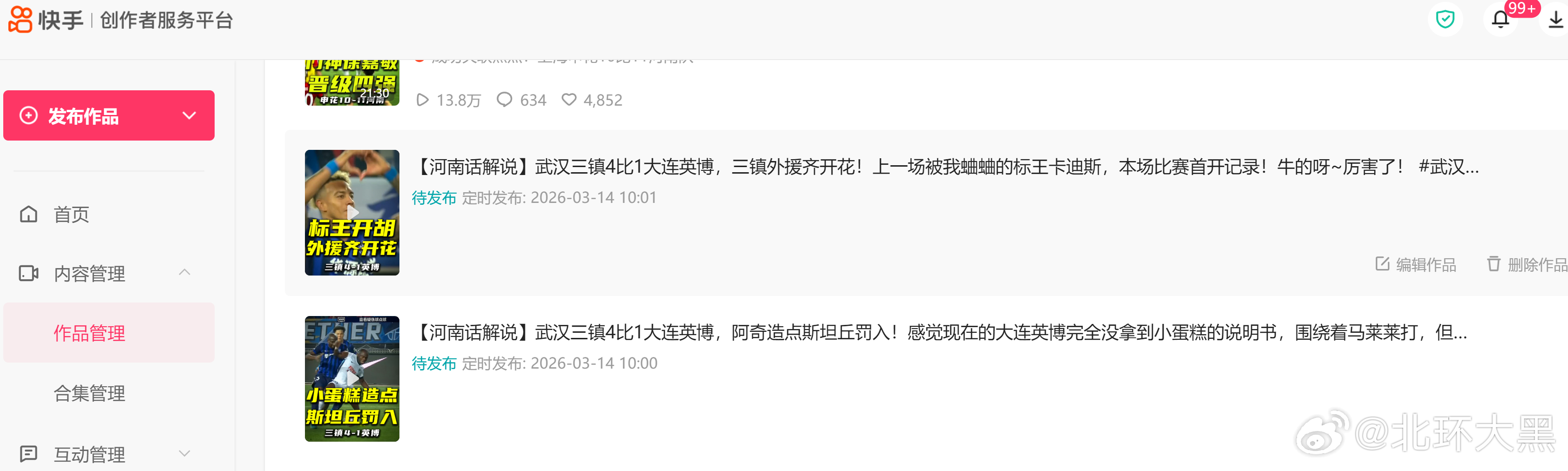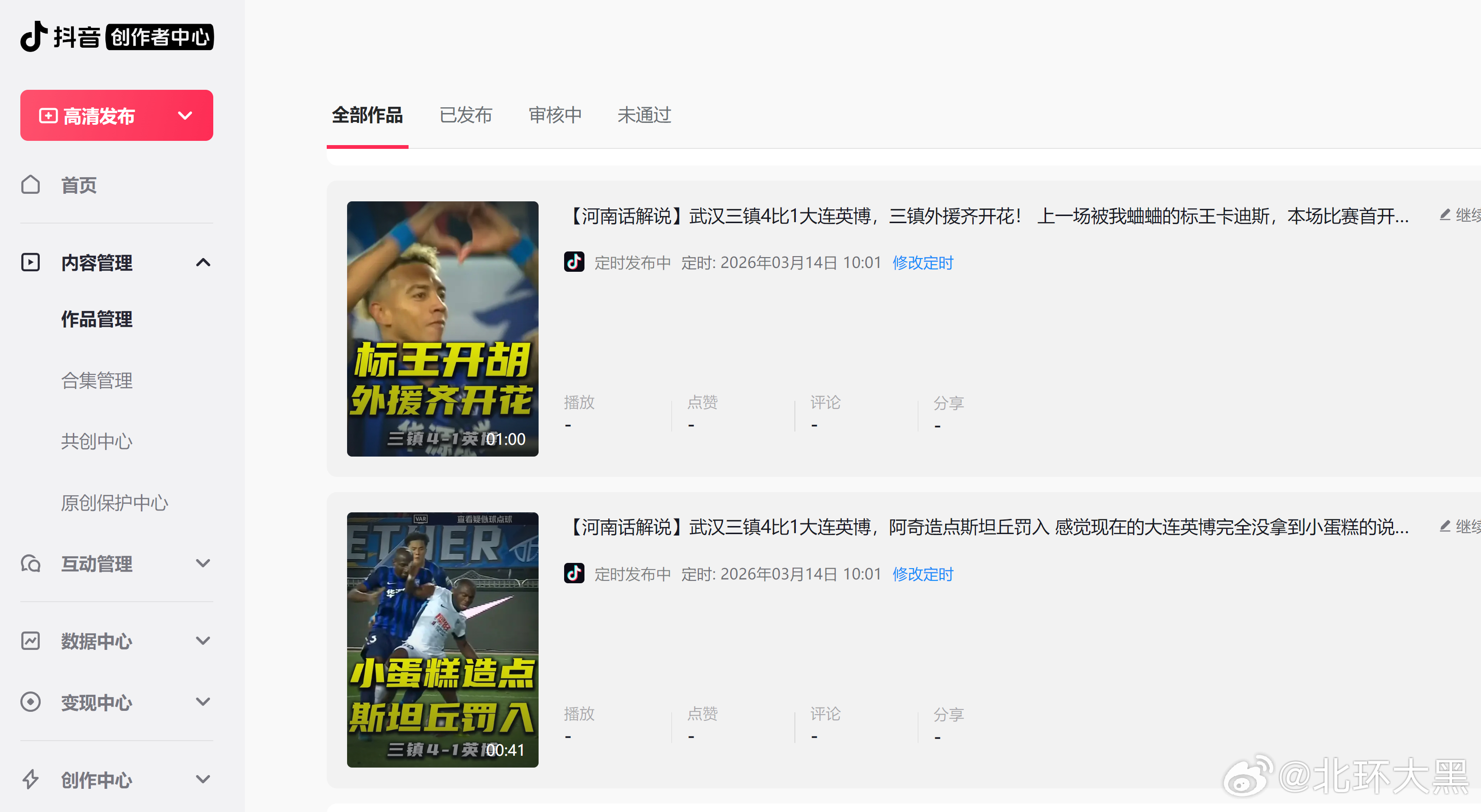 以前是比赛播完了,赶紧剪片发集锦,剪出来一个视频库库各种网站一顿传。现在好了,先剪辑一个完整版的发咪咕视频,然后再分俩队的进球,浓缩成1分钟集锦,分别剪出来,然后设置定时发布,比赛次日10.00之后发布。工作量暴增。哎~谁能理解自媒体选手的版权痛苦。哎中超联赛