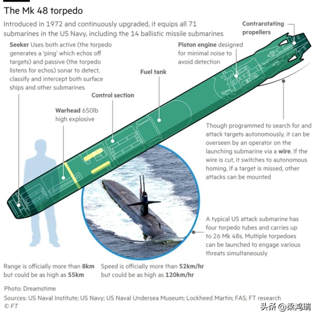 你知道Mk 48鱼雷实际上并非“击中”目标吗?它的设计是在龙骨下方直接引爆,产生一个巨大的气泡,将舰船抬升,并像折断一根干树枝一样折断其脊柱。IRIS Dena号就是这样沉没的。以下是对这种古老却又完全现代化的武器的概述。 Mk 48 型鱼雷——这是美国海军潜艇部队的主力重型武器。自 1972 年服役以来,它经历了多次升级,能够攻击水面舰艇及深海潜艇。 以下是该鱼雷的关键技术信息: 核心规格与性能 威力:携带约 650 磅(约 295 公斤)的高能炸药。 速度:官方公布速度超过 52 公里/小时,但实际最高可达 120 公里/小时。 射程:官方公布射程大于 8 公里,实际射程最高可达 55 公里。 载弹量:一艘典型的美军攻击型潜艇拥有 4 个鱼雷发射管,可携带多达 26 枚 Mk 48。 主要组成部分 寻标器 (Seeker):位于最前端,利用主动声呐(发出“乒”声回响)和被动声呐(静听敌方声音)来探测、分类并拦截目标。 控制段 (Control section):负责制导与转向。它可以通过一条光纤导线由发射艇的操纵员进行人工引导;如果导线断开,鱼雷会切换到自主寻标模式。 动力系统: 活塞发动机:设计旨在最大限度降低噪音,避免被发现。 对转螺旋桨 (Contrarotating propellers):位于尾部,提供高效且稳定的推力。 独特优势 Mk 48 具有多次攻击能力。如果首轮攻击未命中目标,它可以被重新编程或自主进行后续攻击尝试。