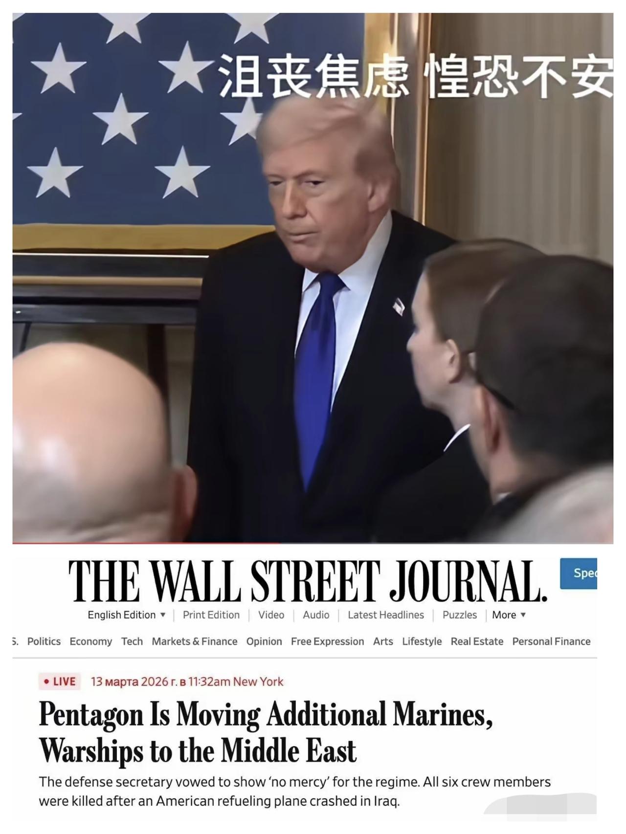 急调5000陆战队扑中东,美国即将深陷陆战泥潭,拔毛鹰再难起飞! 美媒突然爆出猛料,五角大楼已批准向中东增兵,派出的黎波里号两栖攻击舰,搭载一支约5000人的海军陆战队远征部队,直接投入对伊朗相关行动。这不是威慑,是被逼到墙角的疯狂补兵。 开战前,特朗普高调喊着速战速决,以为靠空中优势,短短几天就能碾压局面,逼迫伊朗投降。可现实狠狠打脸,战事久拖不决,伊朗反击不断,美军基地频频遇袭,精确弹药库存告急,所谓快速胜利沦为笑话。前线兵力不足、局势失控,白宫不得不从亚太调兵救火,拆东墙补西墙。 5000人看似声势浩大,却填不满中东这个无底洞。陆地战场地形复杂、民兵四起,美军空有装备优势,根本无法有效控制局面,只会一步步陷入地面消耗战。国内通胀高企、反战声浪高涨,国际上盟友观望、不愿陪葬,美国已成孤家寡人。 从耀武扬威到狼狈增兵,美国彻底暴露外强中干。这场仗势必让他打光家底、透支信誉,曾经不可一世的白头鹰,在中东泥潭里被拔光羽毛,进退两难。强行下场只会越陷越深,等待它的,只会是霸权加速崩塌的结局。 伊朗反击美军 中东乱势 中东动向 美国中东部署 美军围堵伊朗