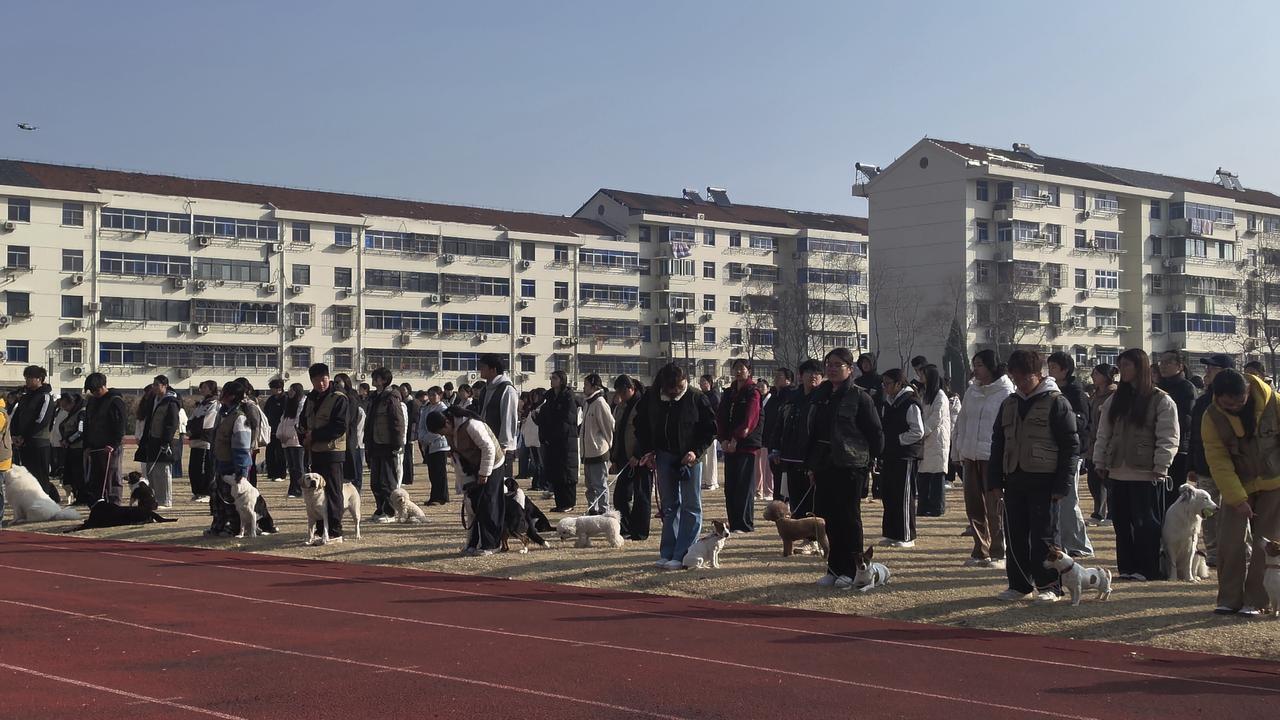 在江苏农牧科技职业学院观摩第四届大学生宠物运动会。该校宠物科技学院设有宠物养护训