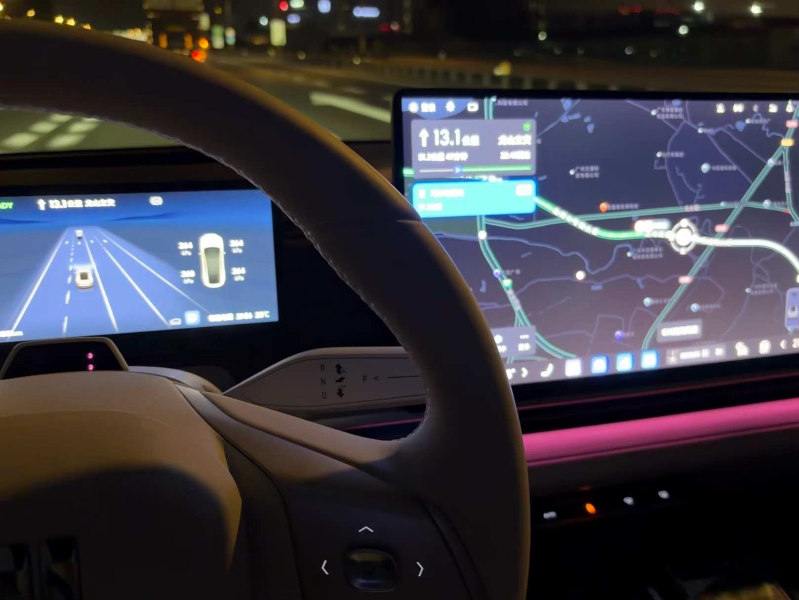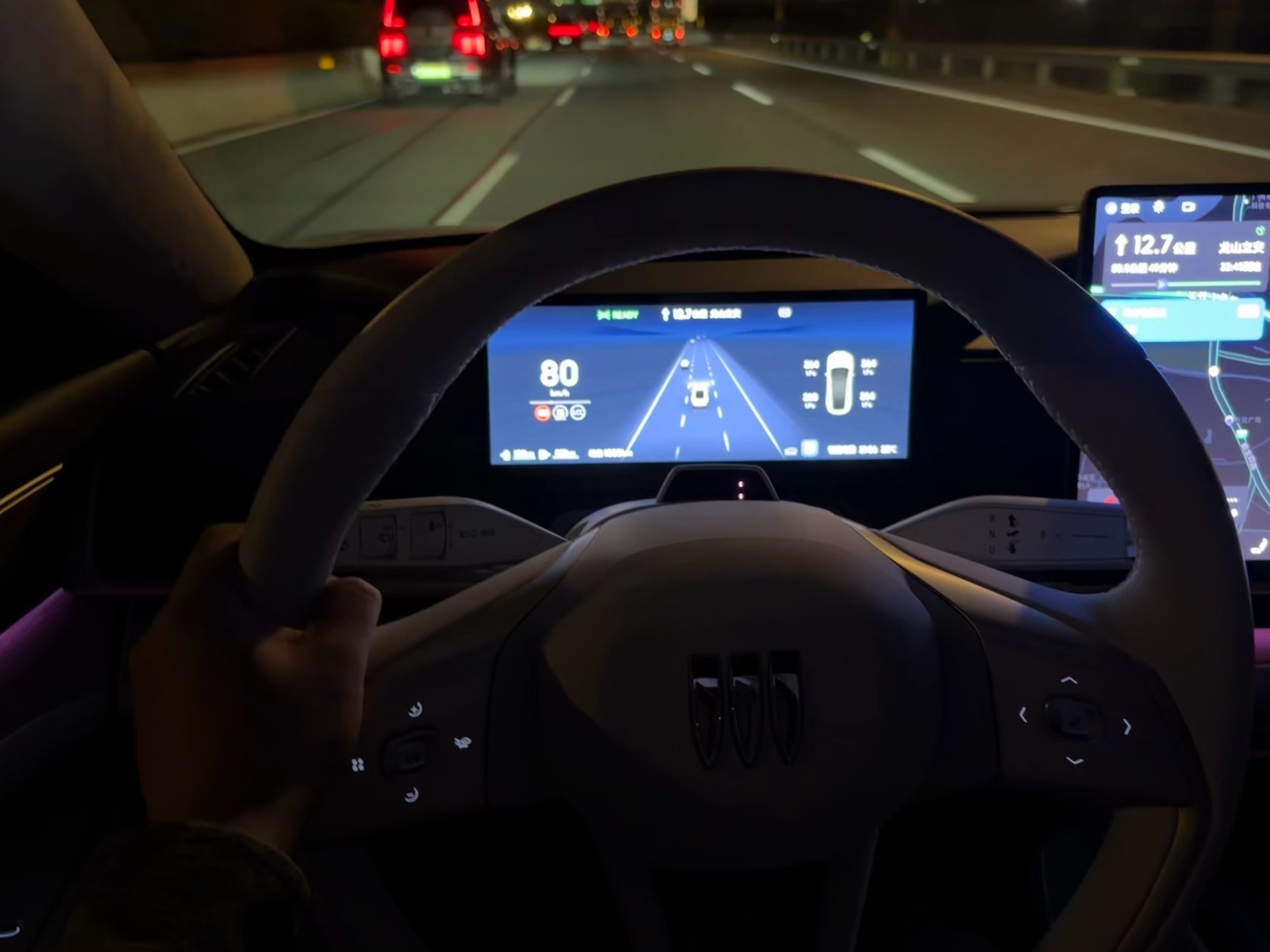 别克至境L7的晚上内饰氛围感非常到位。