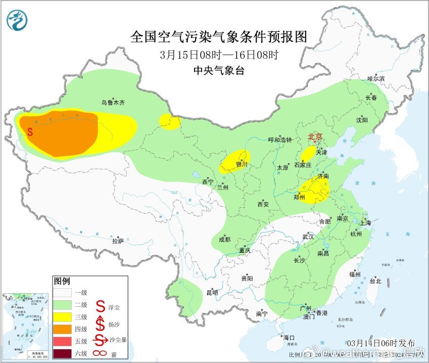 今天白天到明晨,霾随着冷空气和降水到来,向南转移减弱。而新疆塔里木盆地的沙尘会持续。并且16日,内蒙古西部还会再次起沙。而华北黄淮的霾,明天减弱后,后天还会再次发展增多。对应形势场,14-15日冷空气南下削减霾,16日转为地面高压后部的偏南风,污染会再次累积。