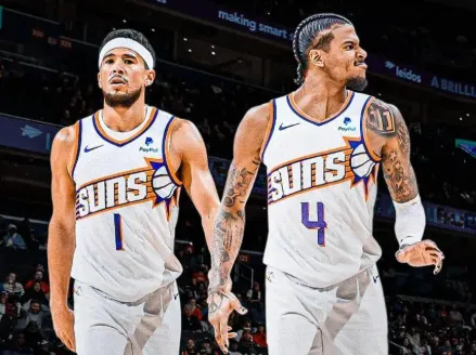 本场比赛德文-布克与杰伦-格林分别砍下31分和34分,加上上一场赢下步行者的比赛,两人已经连续两场一起砍下30+,近两场二人场均合砍72.0分。
