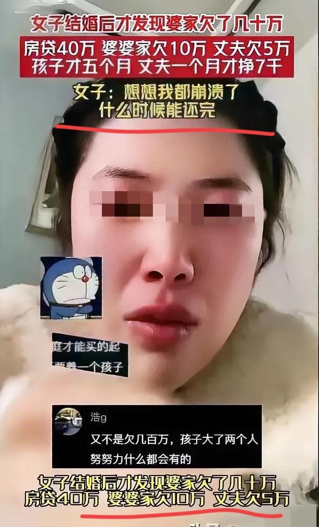 这女的该不该哭? 辽宁一女子,刚结完婚,直接崩溃大哭,结完婚才发现,自己不是来享福的,而是来和婆家一起还债的。 婚前婆家满口承诺,婚房、工作、彩礼样样周全,绝口不提债务。等婚礼结束、孩子出生,才把一堆账单甩在她面前。房贷、外债、老公的欠款,加起来压得人喘不过气,她带着五个月的宝宝没法工作,全家收入捉襟见肘,未来一眼望不到头。 婚姻里最伤人的从不是清贫,而是刻意隐瞒、消耗真心。坦诚是婚姻的底线,一起吃苦是情分,被蒙在鼓里填坑,那是算计。这样的家庭,连最基本的真诚都做不到,又怎么配得上别人托付一生? 换作是你,遇到这种婚前瞒债的情况,会怎么选择?