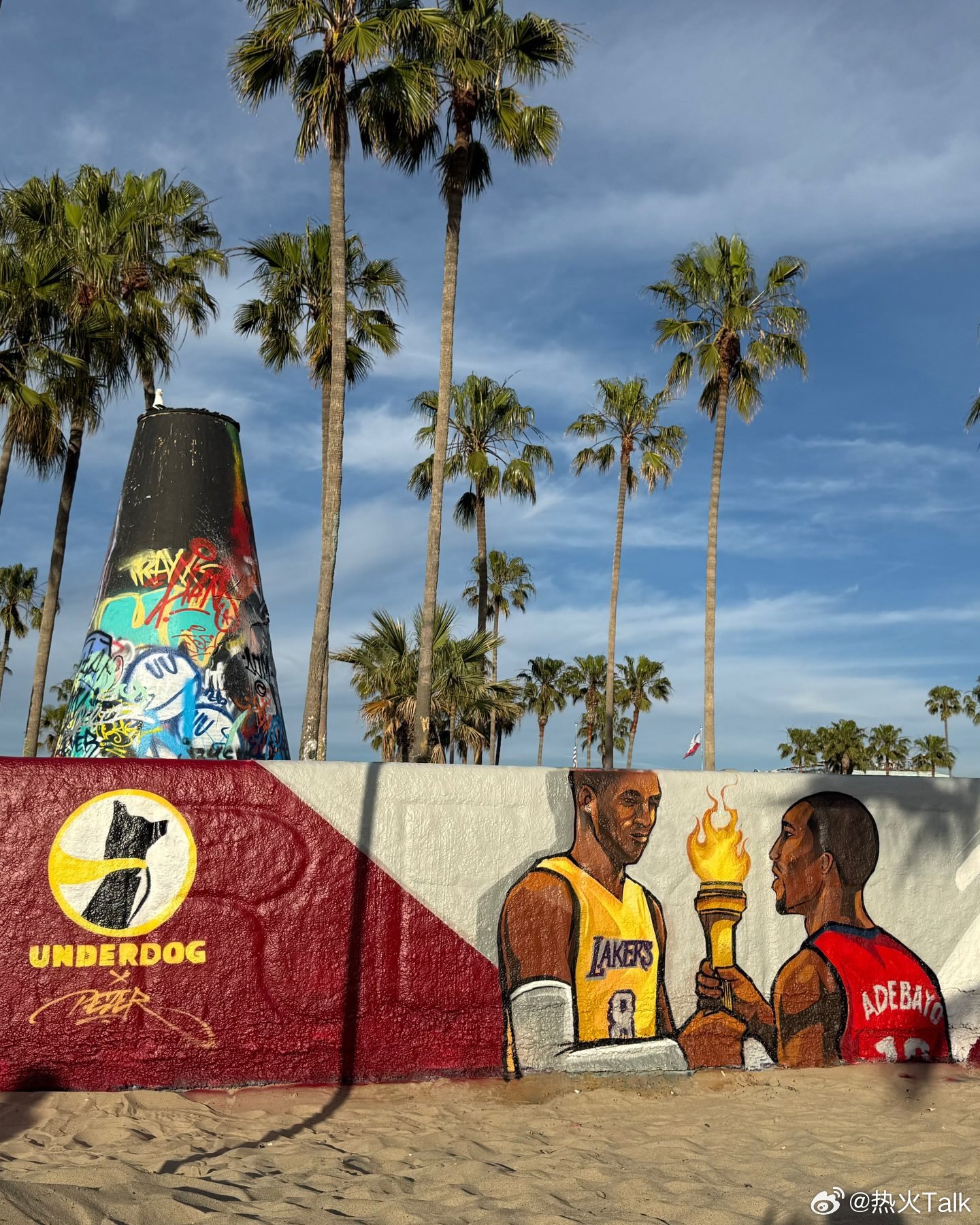 Underdog在洛杉矶创作了一幅壁画:阿德巴约从科比手中接过火炬。