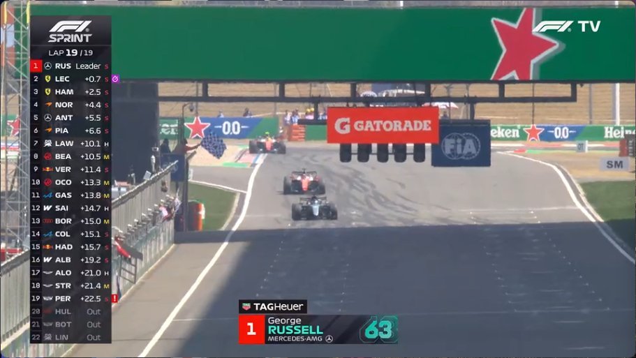 2026赛季F1中国🇨🇳大奖赛 冲刺赛结束🔚梅赛德斯车队车手拉塞尔拿下冲刺赛冠军🥇,法拉利车队车手勒克莱尔拿下冲刺赛亚军🥈、队友汉密尔顿拿下冲刺赛季军🥉……诺里斯第四,安东内利第五,皮亚斯特里第六,劳森第七,贝尔曼第八……