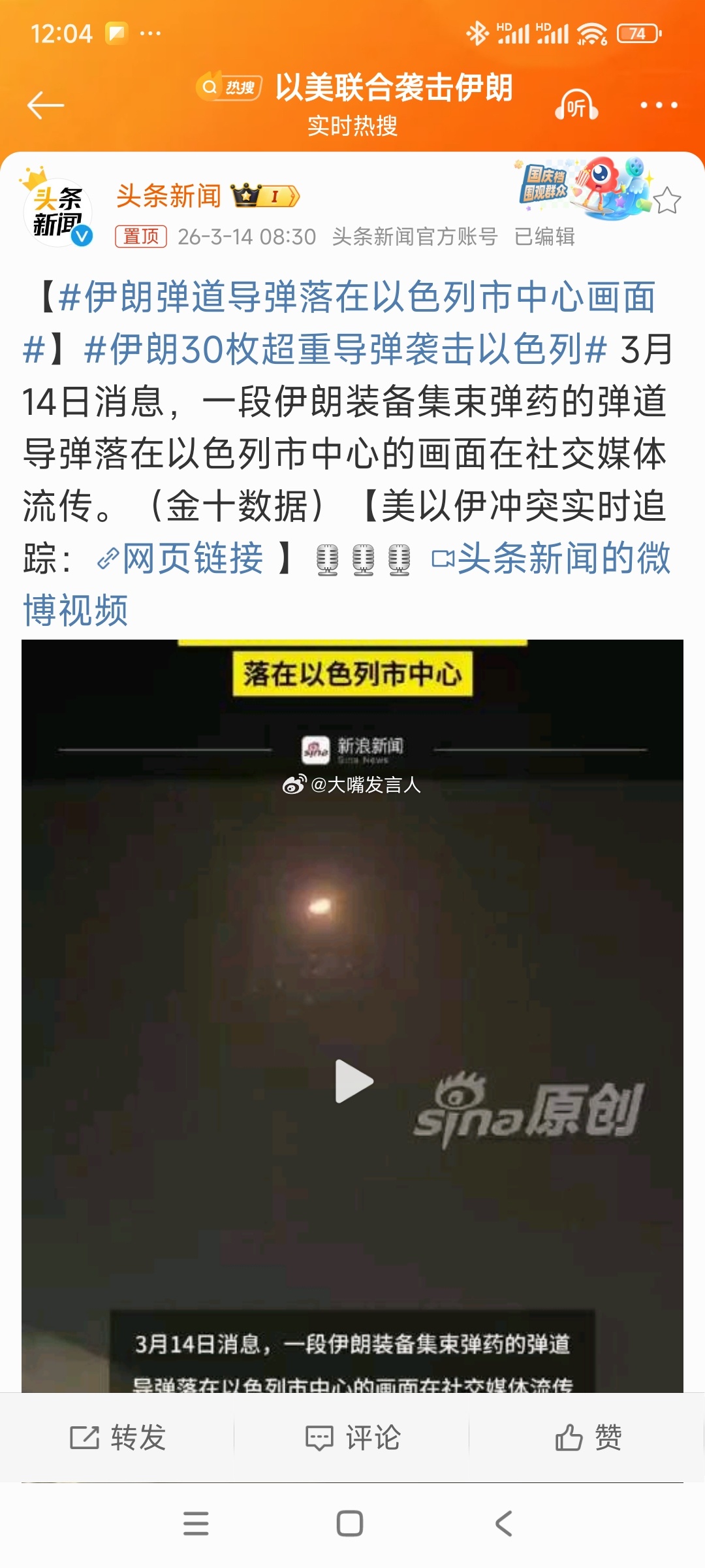 伊朗弹道导弹落在以色列市中心画面 以色列民众也有机会一点点感受加沙人民的苦难。伊朗30枚超重导弹袭击以色列 ,热点观点