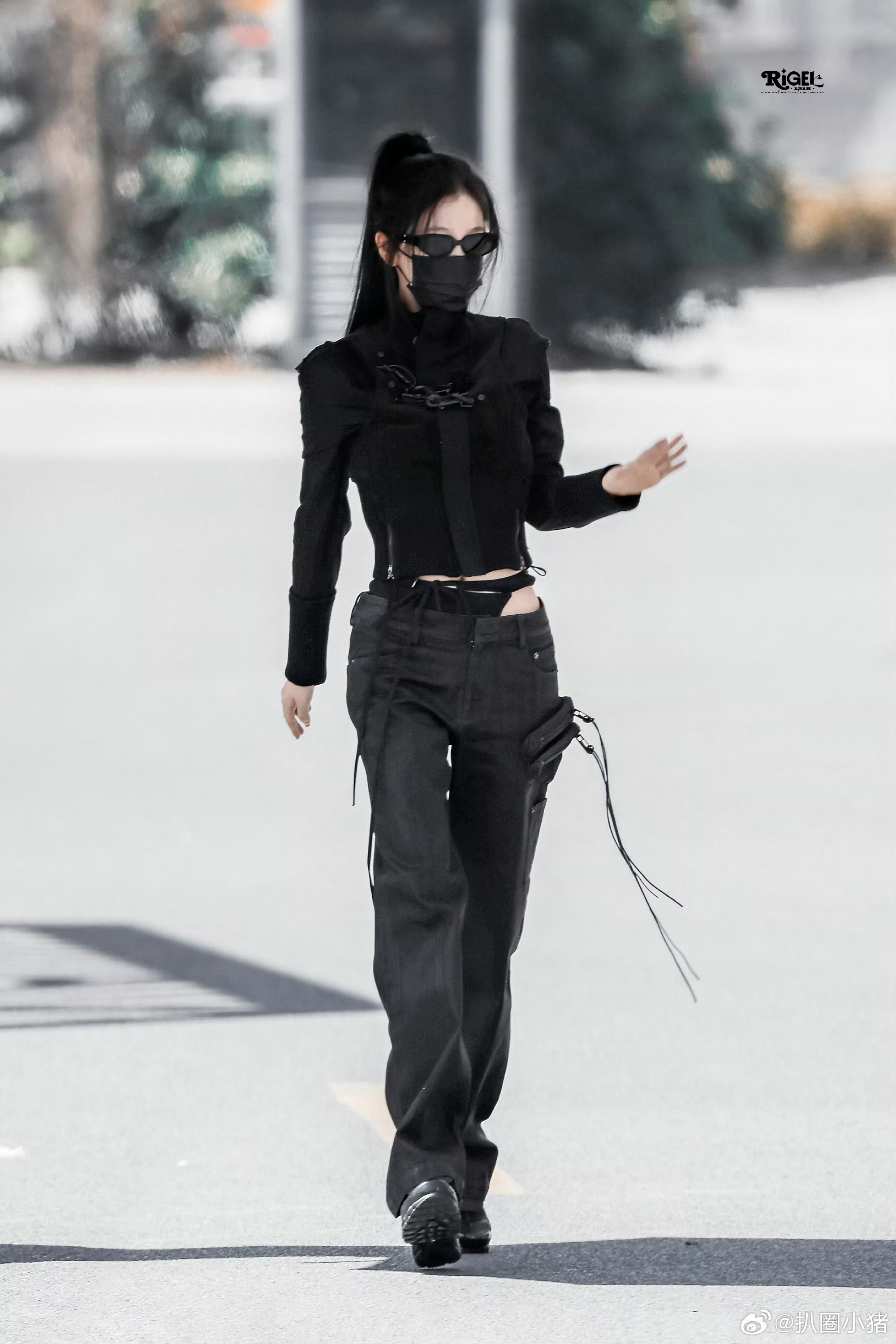 刘亦菲这条裤子挺养生,毕竟降温了肚脐眼必须护住啊