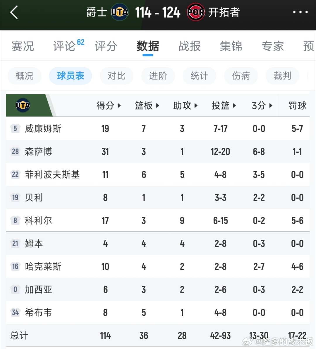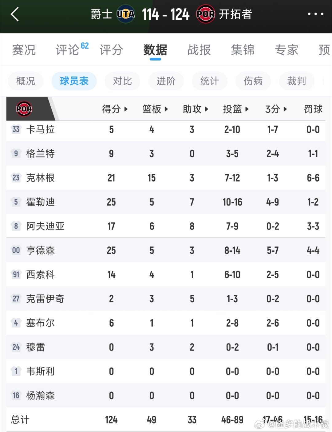 爵士vs开拓者