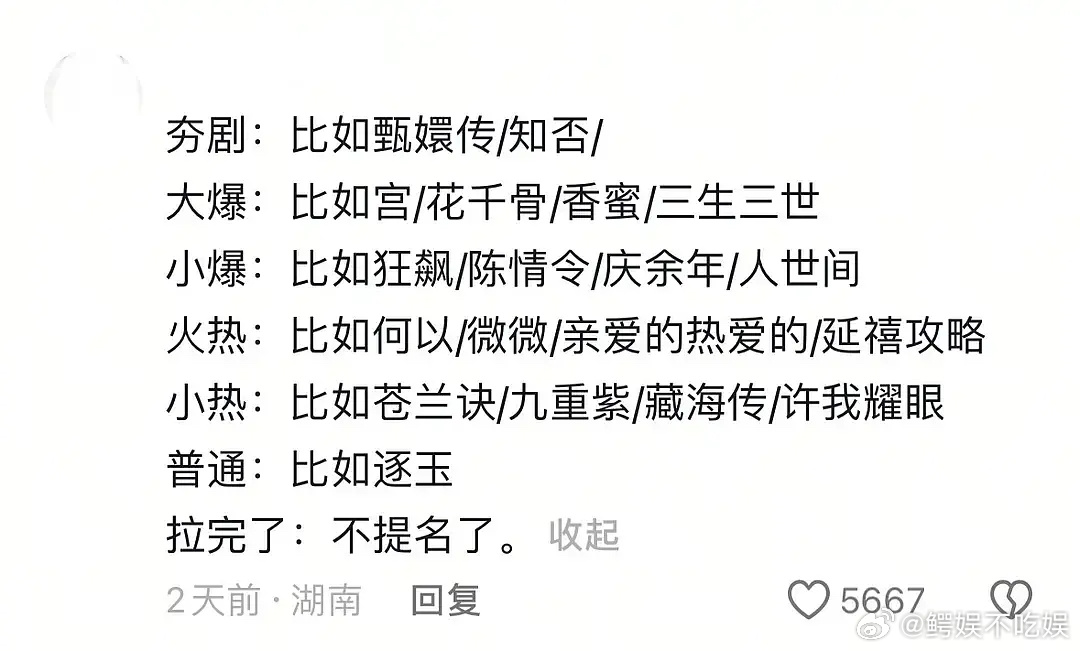 疑似幂粉发布剧集从夯到拉,逐玉倒数第一,是不是因为编剧恨上张凌赫和田曦薇了