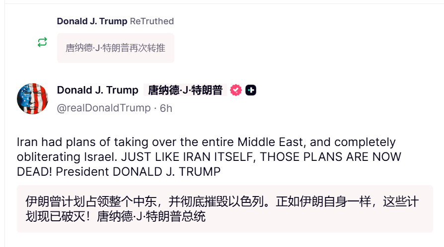 🔻特朗普:赢了✌️。🔻同时,他还痛骂 fake news 以赢小而不麻。🔻via realdonaldtrump伊朗30枚超重导弹袭击以色列伊朗向以色列发动最猛烈空袭海外新鲜事中东现场直击