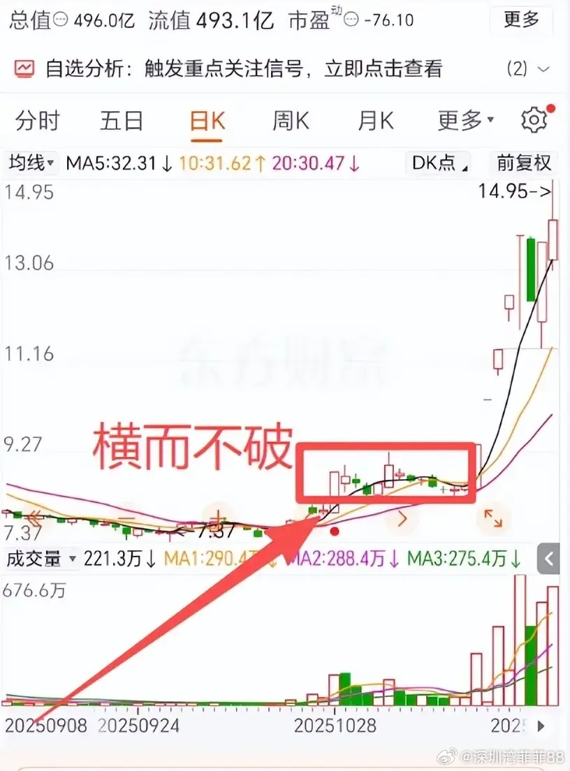 案例验证:以航发为例,2025年10月28日涨停(量能封单强),后12天横盘不破涨停价,缩量获20日线支撑,洗盘后涨至43.50元,涨幅超55%。