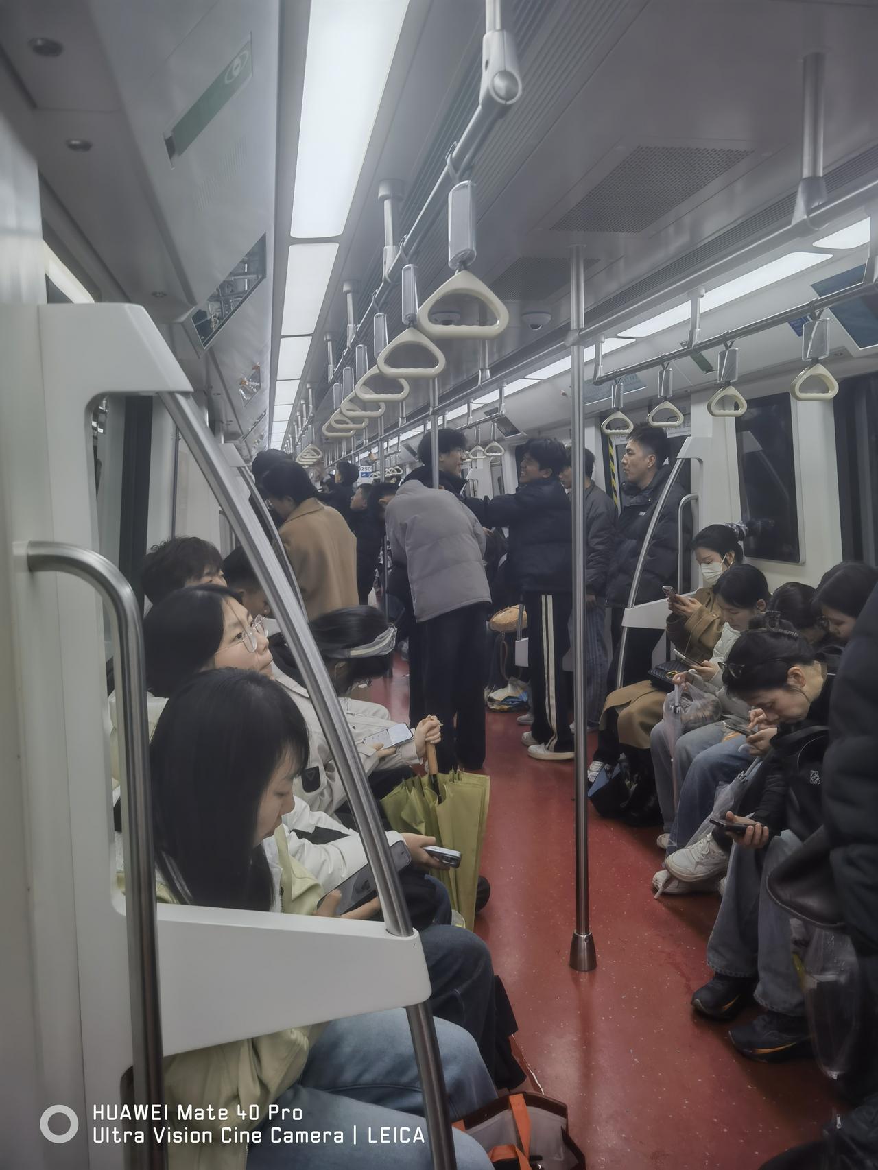 今天中雨,周六下午16:00,西安地铁4号线客流量依然很大,地铁已成为西安市民便