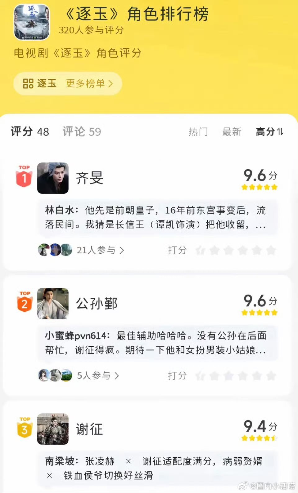 张凌赫被掀桌了吗?逐玉角色热榜,张凌赫的谢征居然才排第三,第一是齐旻