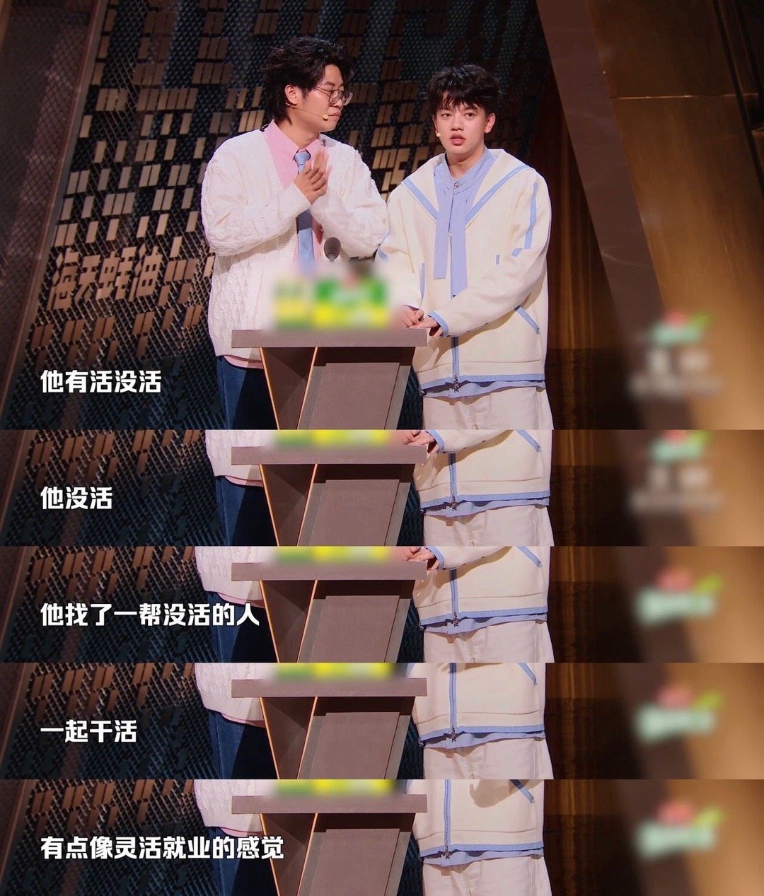 0713一个没活的找了一帮没活的主咖和Ta的朋友们 谭湘文看徐浩伦疯狂cue苏醒陈年老梗时表情已经绷不住了,等到“没活的找没活的”出来直接破功,这波兄弟联手蛐蛐人堪称本期最强笑点。