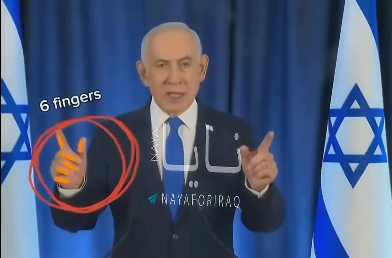 以色列总理内塔尼亚胡日前发表了视频讲话,但是这段视频的真实性却受到了广泛质疑。因为内塔尼亚胡在讲话时,右手和左手都出现了六指,而且嘴巴张开时,嘴里没有上排牙齿。这些异常情况,使外界普遍质疑这段视频是AI合成的,内塔尼亚胡有可能在之前伊朗的导弹和无人机反击中已经挂了。