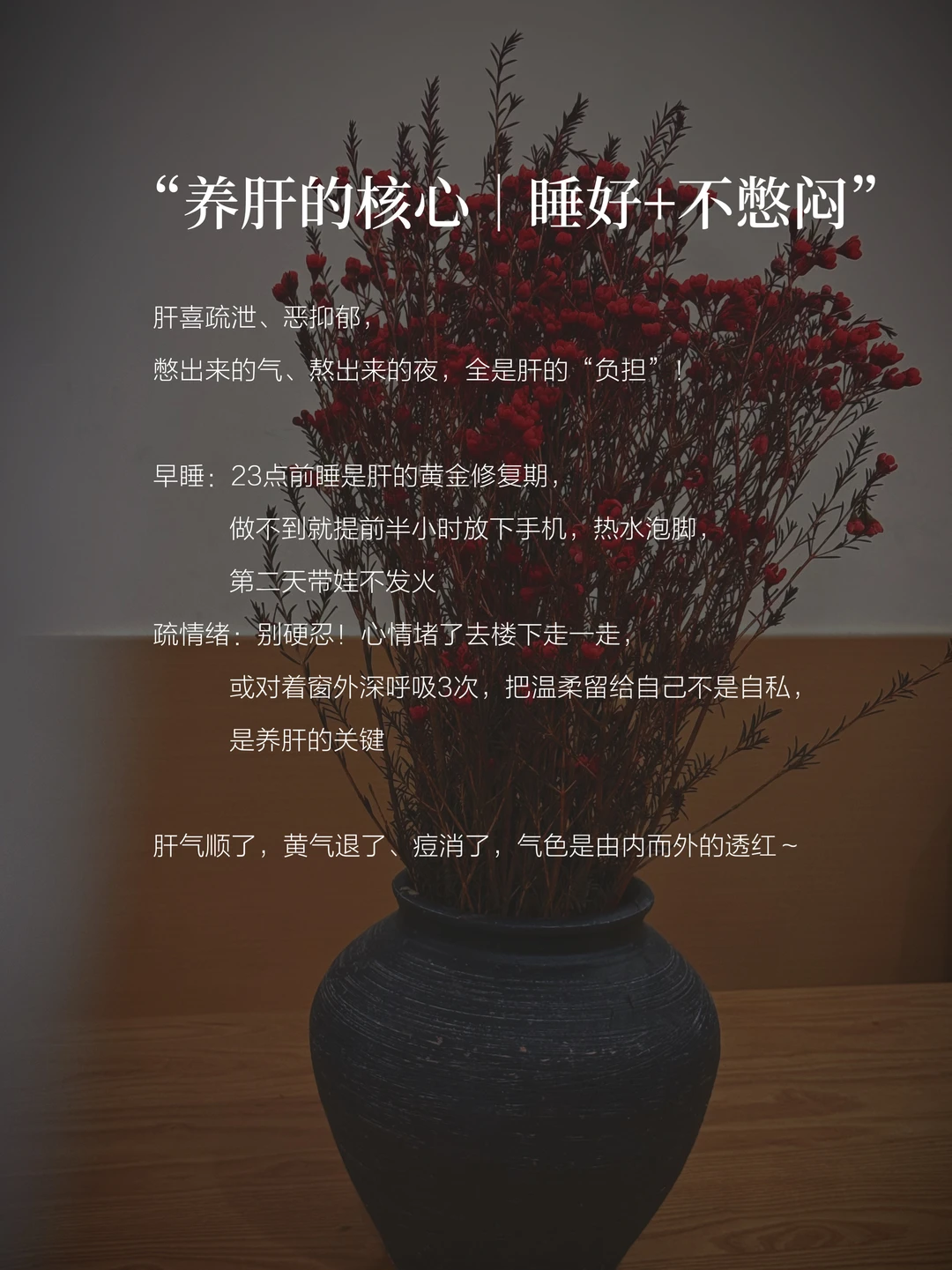 ✅不用追求“完美养生”,每天一个小动作、一杯茶,慢慢养就好。