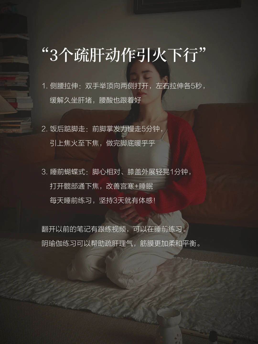 今天先从哪个动作开始?侧腰拉伸/踮脚走/蝴蝶式,评论区告诉我!收藏这篇,7天后回来打卡,看看自己的变化~关注我,下期出「疏肝+引火下行」跟练合集,手把手带你把肝气顺到底!