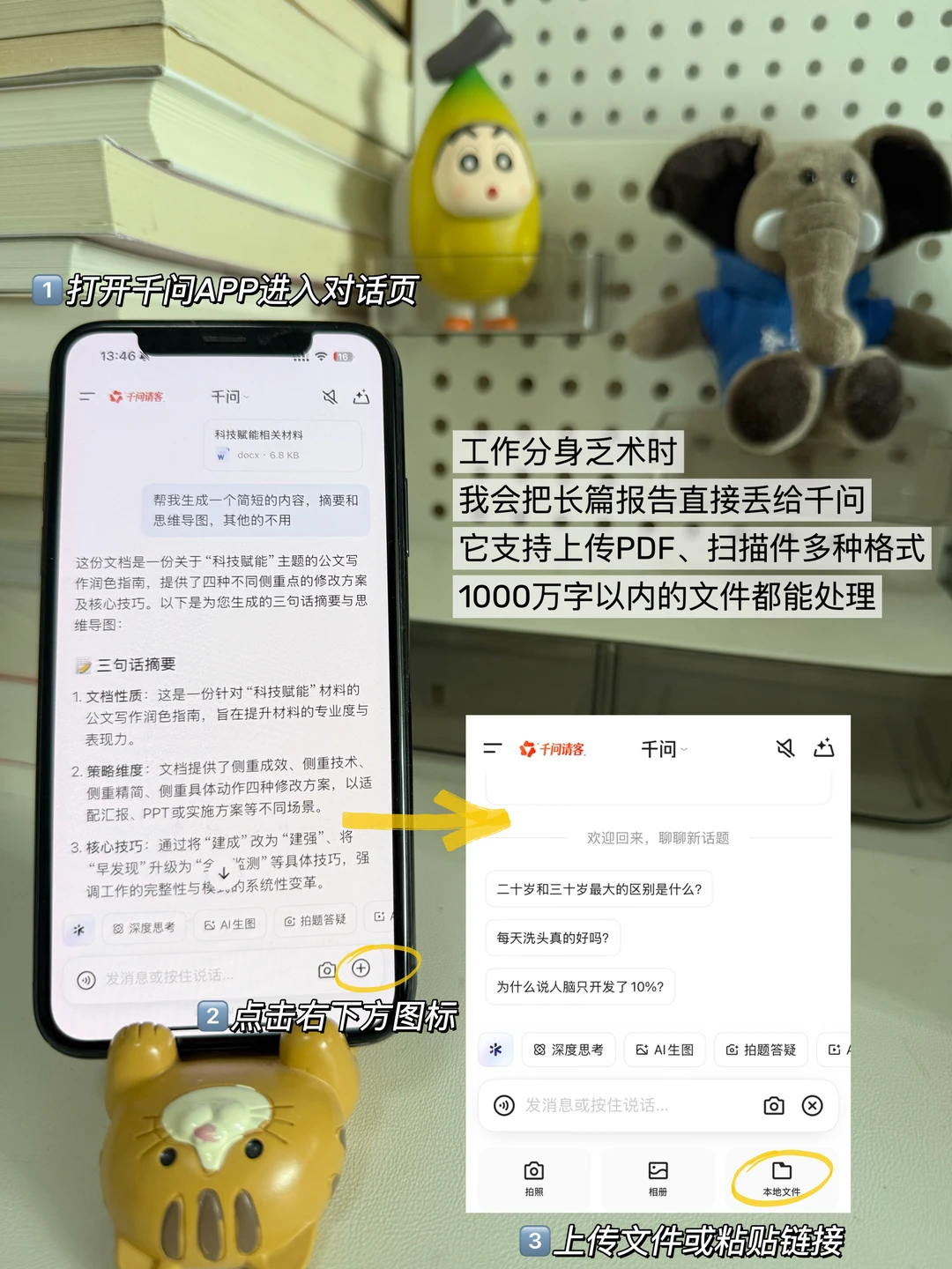 ✓研读材料。分身乏术时,我把长篇报告丢给千问。它支持上传PDF、扫描件多种格式,千万字内文件都能处理。直接喊千问“总结全文观点”“提取第三章要点”“生成思维导图”,它几十秒就吃透厚材料,想细究的地方还能划词提问。办公室常用的是批量处理功能。千问能把十几份总结放一起横向对比,自动提炼共性和亮点,超省时间!