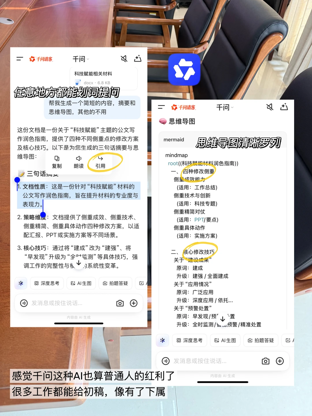 把单位材料研读透才能言之有物,持续复盘自己才能进步。但单位材料动辄几十页,怎样快速吃透?其实不用自己埋头啃,AI时代,我用千问帮我。