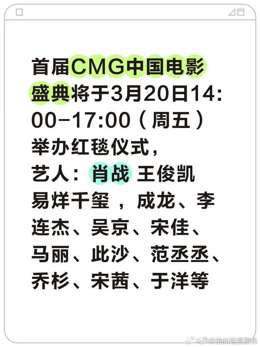 CMG中国电影盛典入围名单3.20举办按剧情、喜剧、按动画、按动作、按记录片提名各类影片和各类型最佳男女主,哈哈哈哈