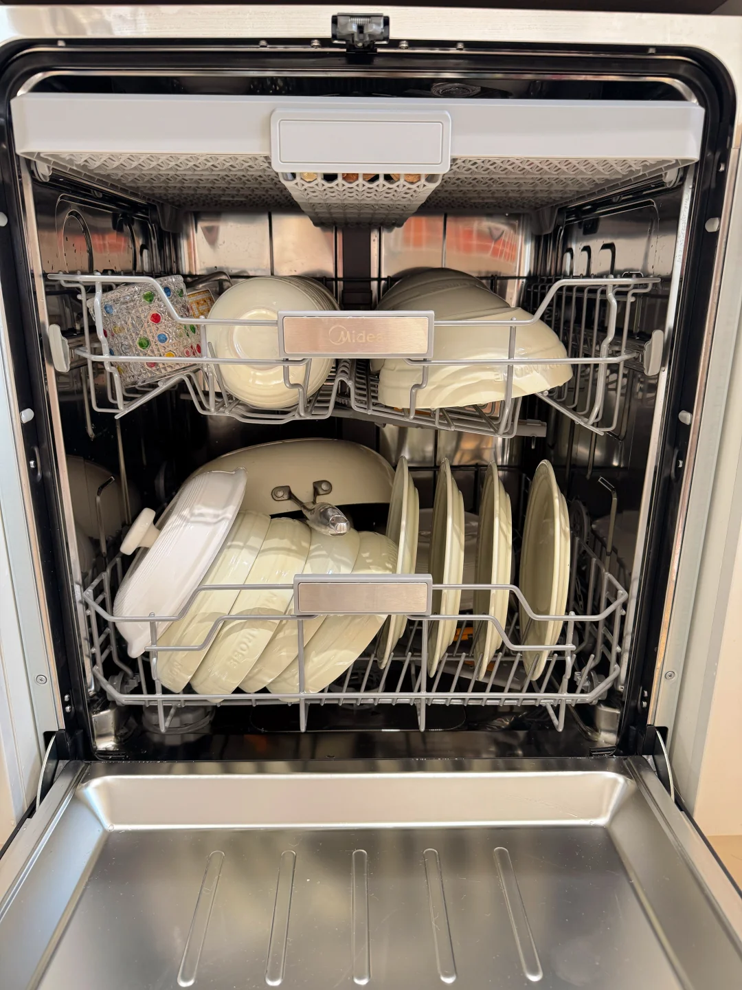 我家这台买了美的,105℃晶焰速干,内腔双风机,内壁也完全烘干,均匀不返潮💧,洗完拿出来就是干爽温热的,没有水渍也不闷味,碗碟直接收纳了,连消毒柜都省了。什么锅碗瓢盆🥣、大盘子、杯子、油乎乎的炒锅🥘,甚至吃火锅留下的重油碗碟,全都能一次性塞进去!!不用纠结什么能放什么不能放,吃完一扔,完事✌🏻