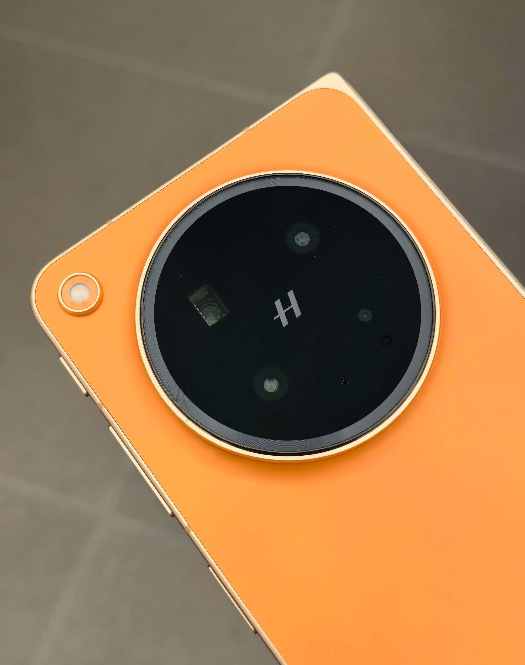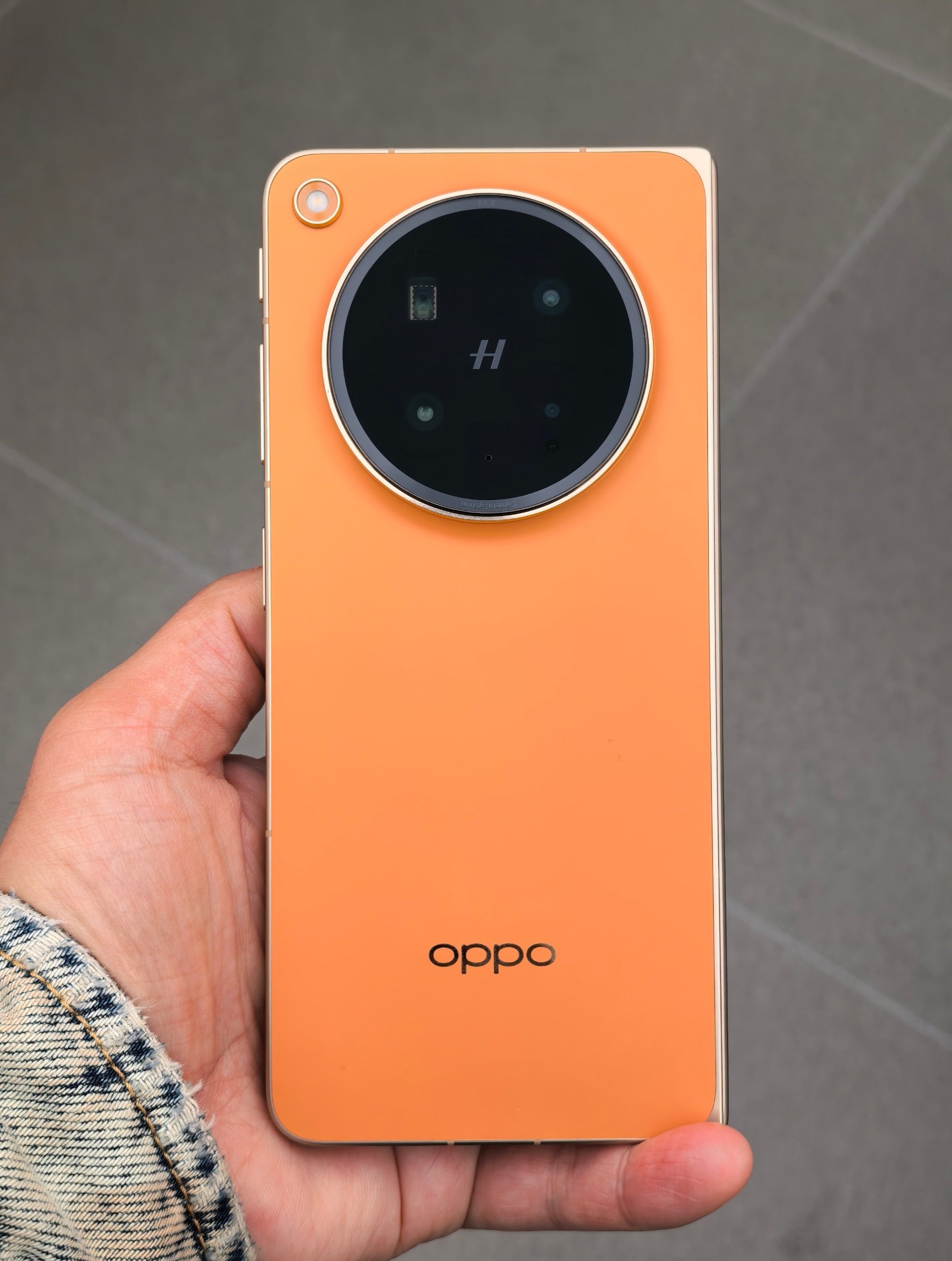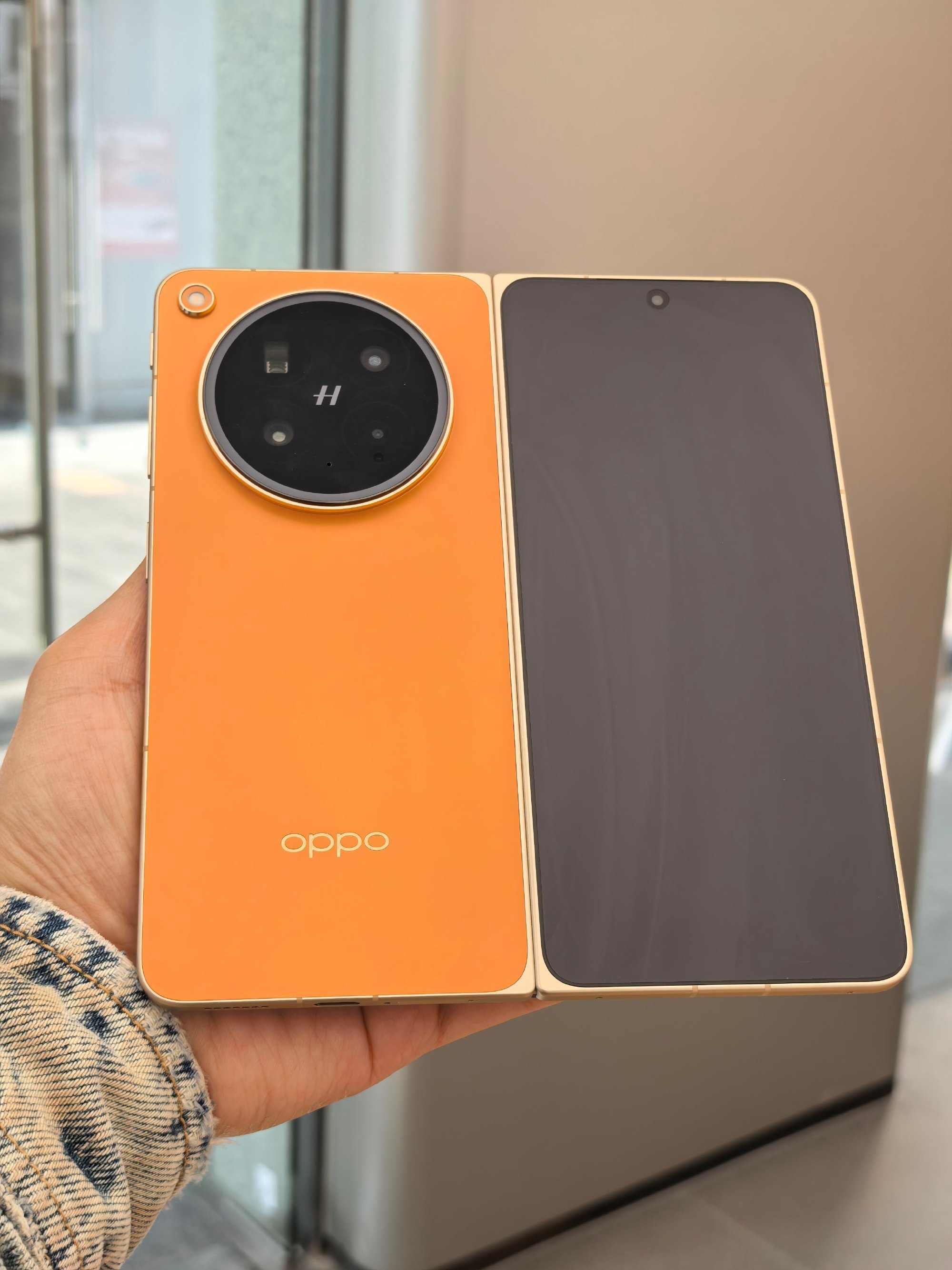 OPPO Find N6金橙真机上手图,橙色很低饱和度,有点马卡龙色的感觉,好看