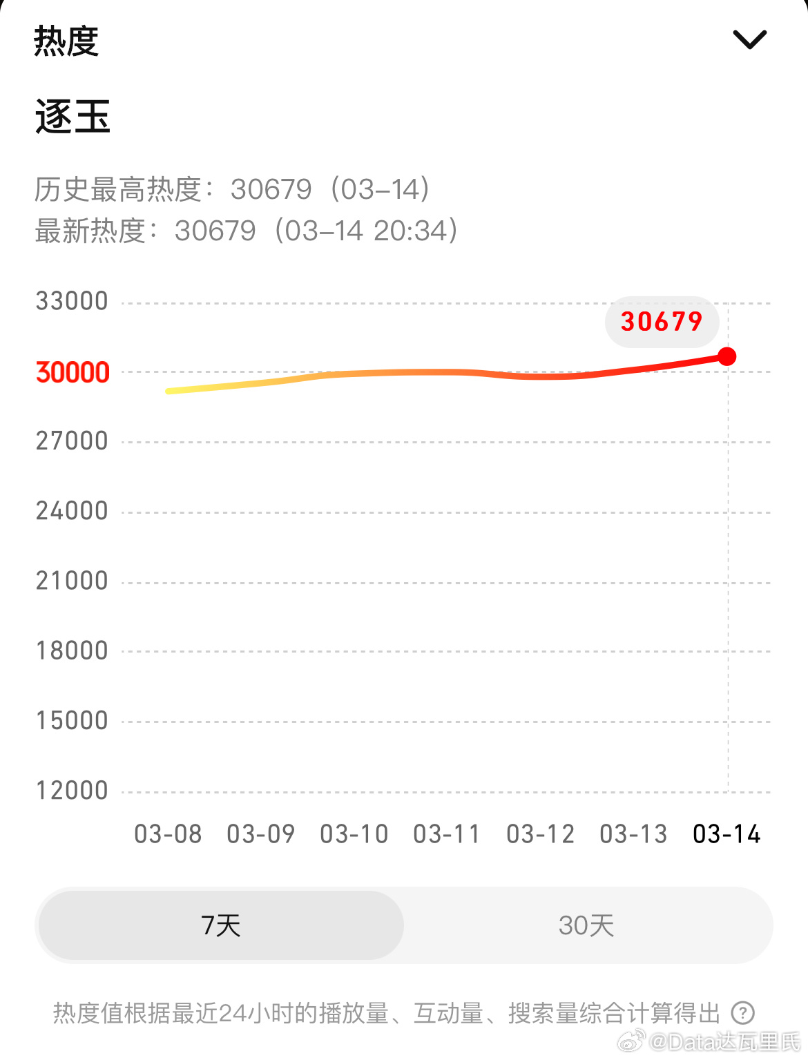 3.13逐玉热度昨日🐧30098+🥝10138云合占比46.8%,云合较昨日涨了700多万啊!!!酷云倒是只涨了近300万,但播放量9900+