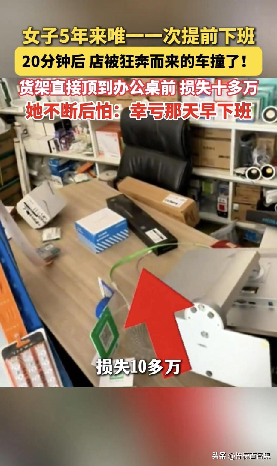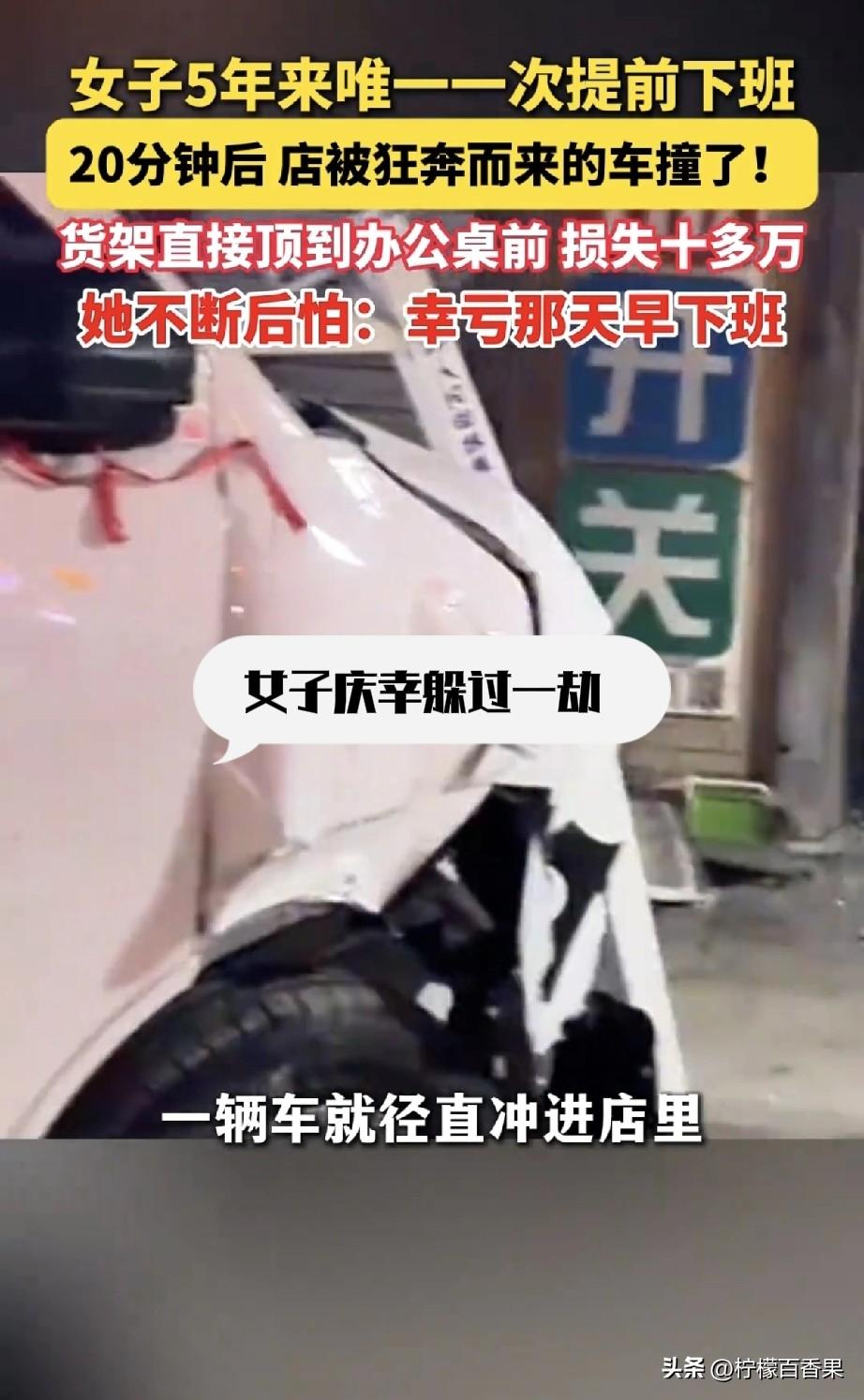 真的,看完这个监控,我彻底信了——有些劫,老天不想让你遭,你就真的躲得过去。 合肥这位开灯具店的大姐,守店整整五年,天天熬到七八点才关门,从来没早走过一天。 可那天,她就是莫名地心慌、累得扛不住,心里一直惦记家里孩子,不到七点就关门走了。 这是她五年来,唯一一次提前下班。 结果她刚走20分钟,一辆车直接失控撞进店里! 卷帘门撞碎,货架撞飞,她天天坐的那个位置,直接被砸得稀烂。 她后来看监控,腿都软了:要是晚走一会儿,躺医院的就是她。 你说这是巧合吗? 我更愿意相信,是冥冥之中自有安排。 是老天爷看她熬得太苦、太拼,舍不得让她受这份罪,悄悄推了她一把,让她早点离开,躲过这场大难。 人这辈子,很多事强求不来,很多劫也躲不开。 可偏偏能躲过去的,都是命里不该绝的人。 平安活着,比什么都重要。