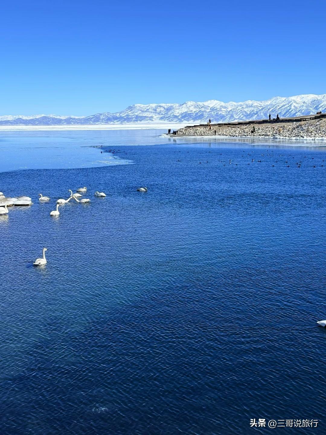 把春天的第一抹蓝,留在赛里木湖 🌈 梦启新疆·心向远方 穿越千里风雪,终于在这个春天,遇见了赛里木湖的苏醒。 这里是大西洋的最后一滴眼泪,也是北疆春日的开篇。 眼下,冰封消融,蓝境初现。🦢 成群的天鹅如约归来,在消融的冰面上嬉戏,雪山流云在湖面上倒影相拥,仿佛天地间都在为这一场重生喝彩。 湖水清澈得能看见水底的卵石,蓝得让人心颤。 站在湖边,听着冰裂的脆响,才懂什么叫“洗尽铅华”。 这一刻,所有的心事都被这纯粹的蓝温柔包容。 心向远方,不负热爱。 如果你累了,就来赛里木湖吧,看一场春天的蓝调盛宴。🏔️