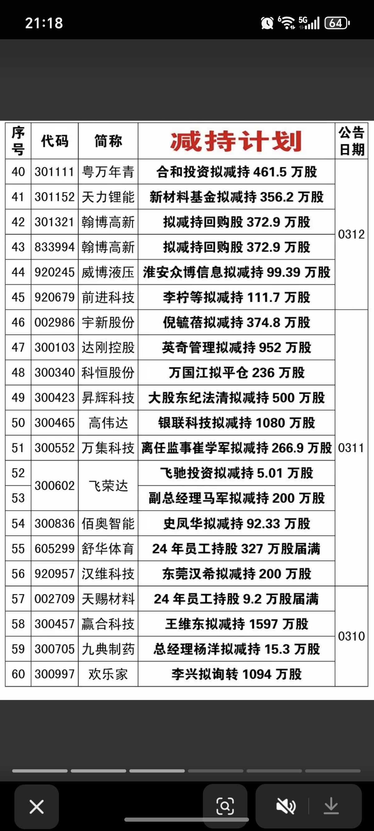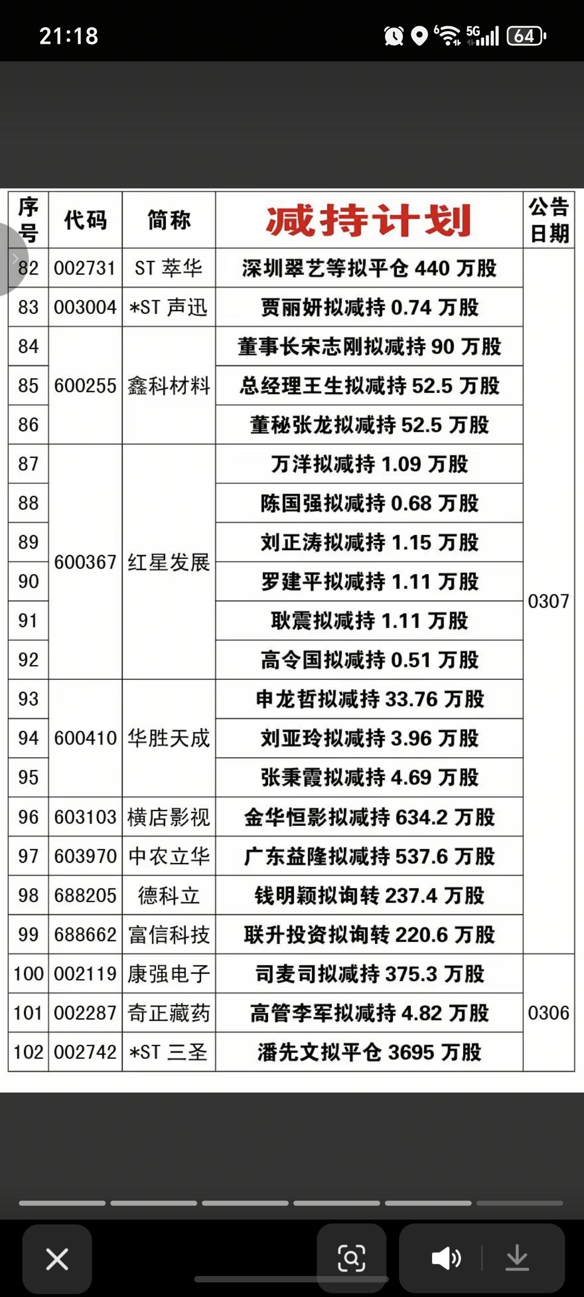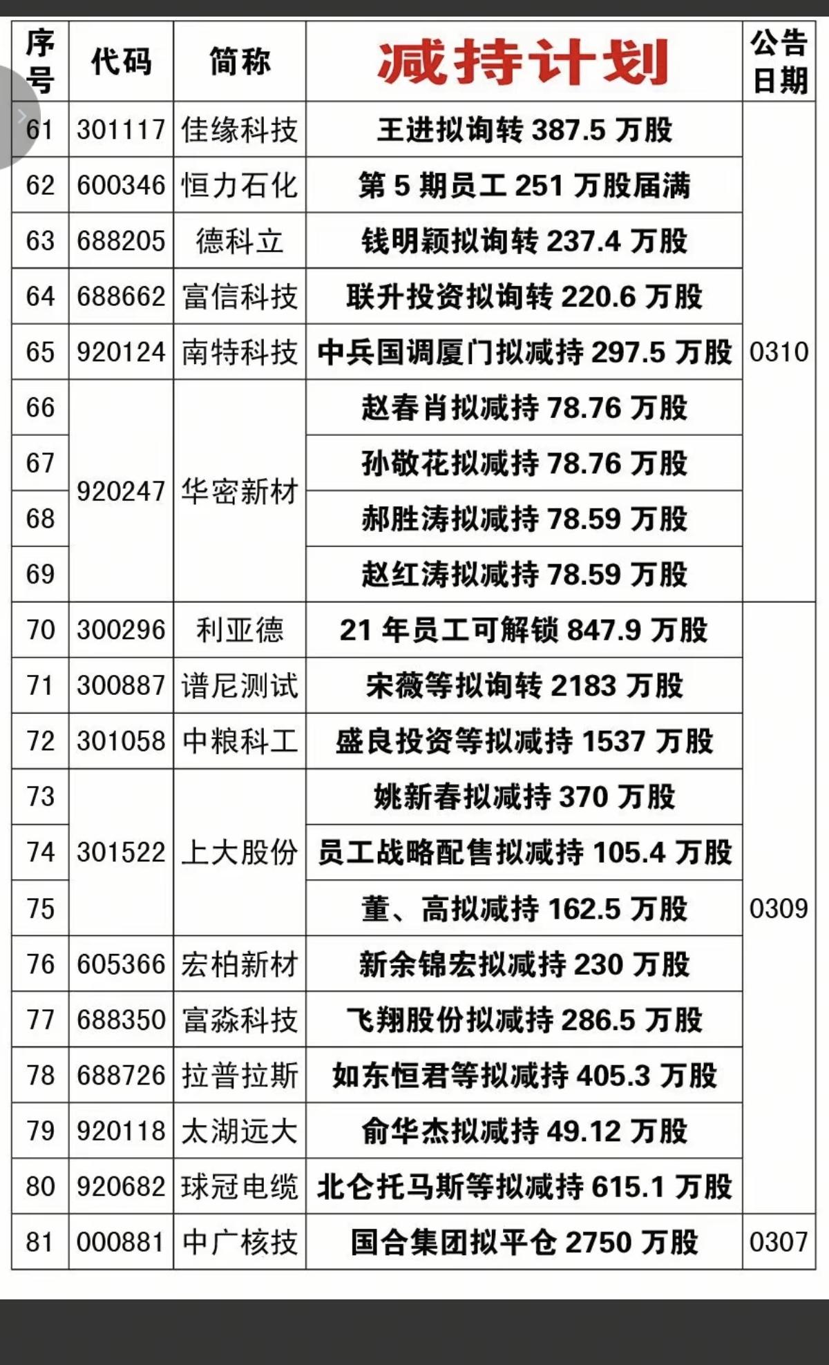 3.14周六 本周116家公司披露减持计划! 低位减持可以跟踪 高管减持的,予以重视! 有的减持股,说不定有一定机会。
