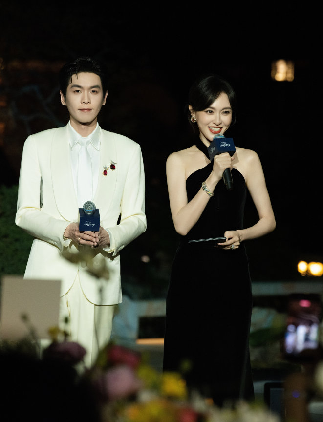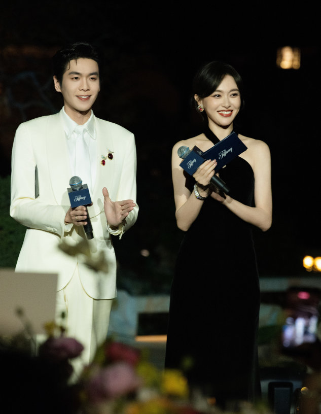 内娱明星在Tiffany晚宴团建 惊艳亮相晚宴开场!唐嫣黑色礼裙搭配精致珠宝耳饰,张若昀白色西装搭配红色胸针,养眼十足!