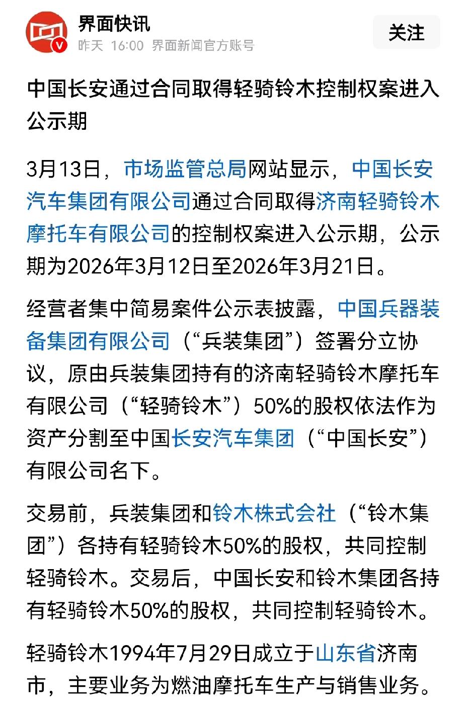 轻骑全部归中国长安。可惜了,如果不是出事,当年中国轻骑未必不会成为像中国长安一样的企业。 当年轻骑集团如日中天的时候,占据了中国摩托车市场的半壁江山,是名副其实的中国摩托车第一企业。 而且轻骑集团也计划造车,利用自己和铃木合作的关系,打算引进日产的二手生产线。 如果能够成了,轻骑未必不能活下来,山东也会有自己的汽车生产企业。 可惜最终没成,随着张家岭入狱,轻骑集团最终破产,最后被中国兵装收购。 而轻骑铃木和轻骑标致则一直生产,直到今天。而中国兵装改革后,退出了长安汽车,并将自己旗下非军工板块全部转移到长安汽车。这样轻骑就成了长安汽车旗下企业。
