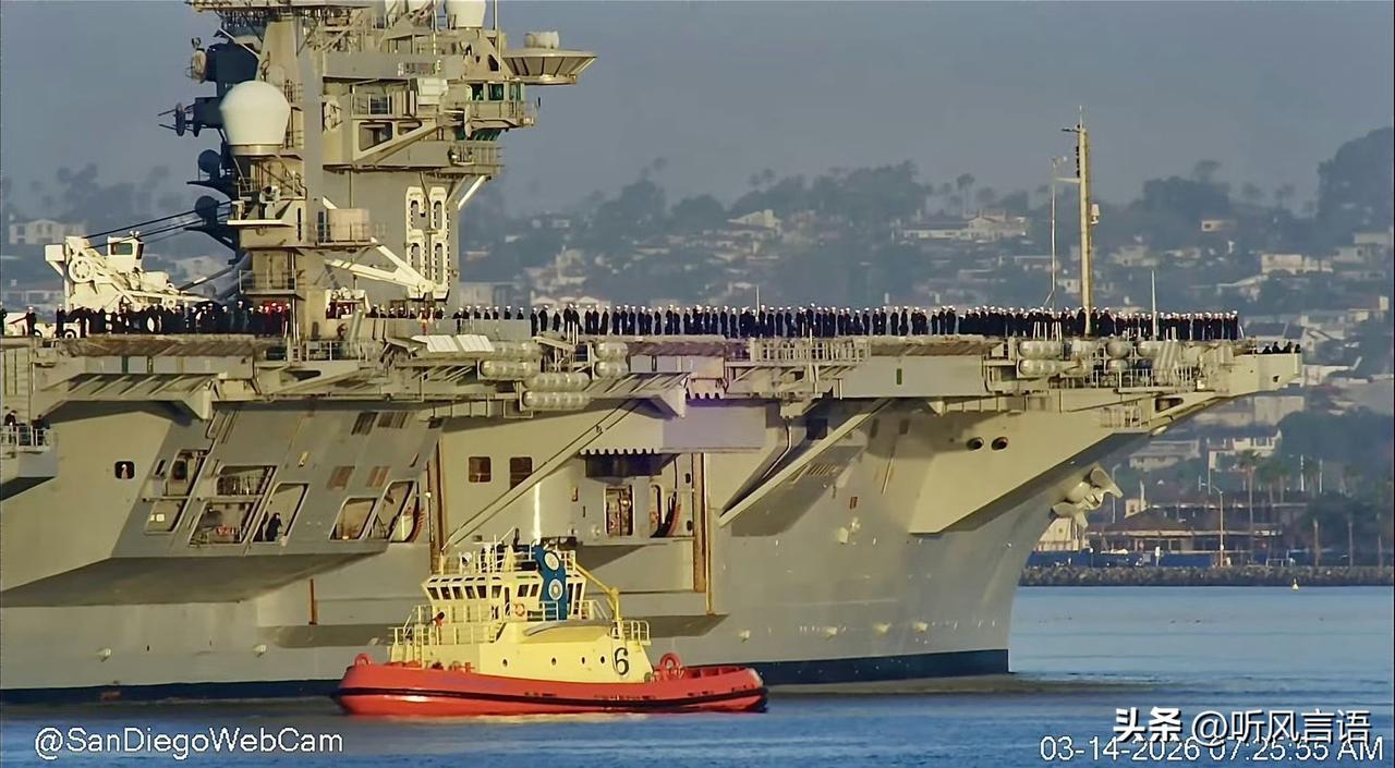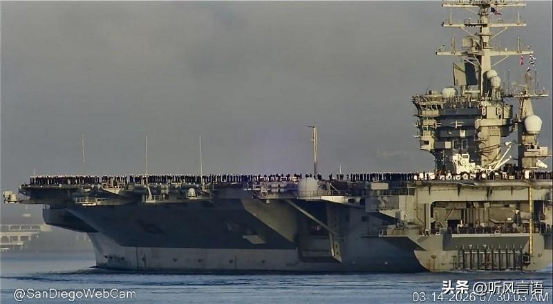 3月14日,美国海军“尼米兹”号航空母舰(CVN - 68)驶离圣迭戈。 船员们再度站坡,而此次离开圣迭戈后,便再也无法归来。 美海军航母