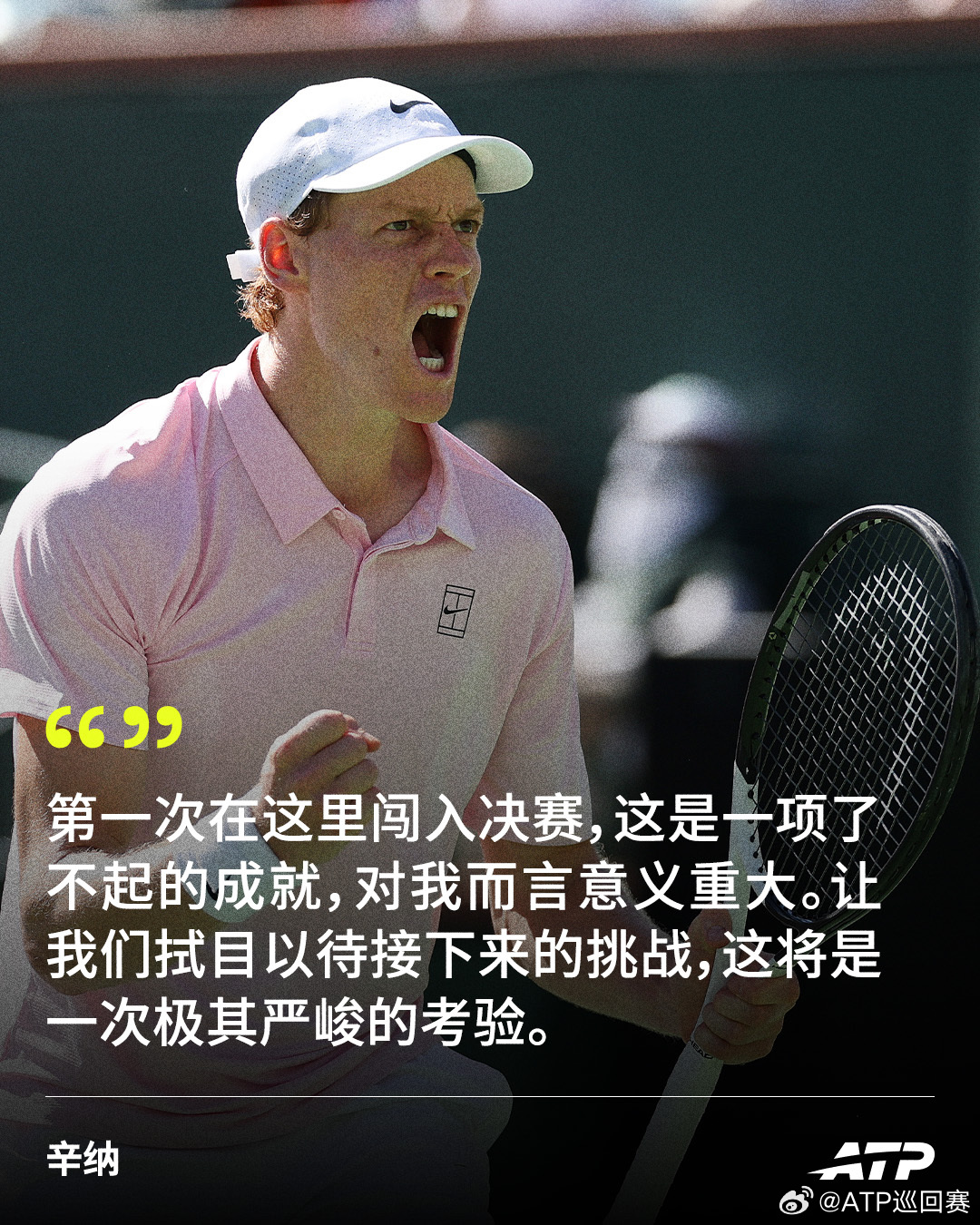 首次在ATP1000印第安维尔斯大师赛闯入决赛后,辛纳说:“这已经是我第三次在这里打进半决赛了,所以(首次打进决赛)我非常高兴。在本周,在这项赛事中,我们取得了进步,对我而言这才是最重要的一点。” 💪
