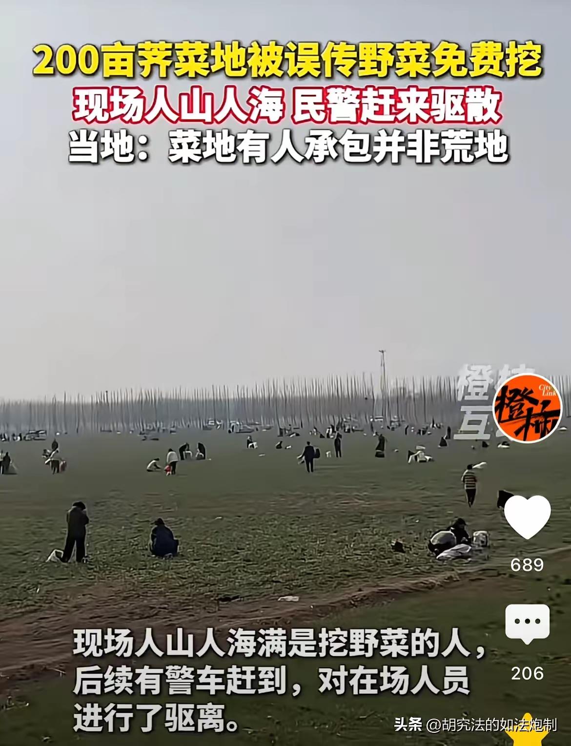 损失谁来赔?河北,一男子承包200亩地种荠菜,谁知被他人发帖称“可以免费挖野菜”,结果引来很多人挖荠菜。报警后,民警对挖野菜的人进行驱赶。网友:这种事年年发生。 这背后的故事,远比表面看到的“免费挖野菜”要复杂得多。你可能会想,野菜不就是大自然的恩赐吗?随便采摘有什么大不了?可事实是,这200亩荠菜不是野生的随意生长,而是这位男子辛辛苦苦承包、耕种的成果。每天早出晚归,喷洒农药、施肥、除草,投入了大量人力物力,才让这片荠菜地生机勃勃。结果,一条“免费挖野菜”的帖子像病毒一样传播开来,瞬间成千上万的人涌入,像一场“抢劫”一样掠夺着这片土地的果实。 有人会说:“这不就是公共资源吗?你承包了土地,别人不能用吗?”其实,土地使用权和所有权在法律上是明确区分的。承包人在这块地上的投入和努力理应受到尊重和保护。可令人心寒的是,这种“随意采摘”的现象,却年复一年、屡禁不止,甚至被部分人当成理所当然。谁在乎这位承包人的血汗钱和生活来源?谁去核算这被毁坏的土地和被盗采的荠菜价值? 更让人揪心的是,这种“免费福利”背后折射的,是当下社会对公共资源和个人财产权界限模糊的认知。大家都愿意享受“免费”,却很少有人愿意承担“尊重”和“责任”。网络时代,信息传播迅速而广泛,一条简单的帖子就能引发一场公共资源的浩劫。这不仅仅是对一个农户的伤害,更是对社会规则和诚信体系的严重挑战。 这件事也暴露了执法的难题。民警虽然及时赶到驱赶了挖掘者,但面对成群结队的人潮,单靠行政手段难以根治问题。这到底是制度漏洞,还是社会心态的畸形?我们不禁要问:当每个人都只想“薅羊毛”,却忽视了背后的付出与规则,社会的秩序还能维持多久? 这不仅仅是“野菜被挖”的故事,更是我们每个人都必须面对的现实:如何在公共利益与个人权利之间找到平衡?如何让尊重和责任成为社会共识,而不是一句空洞的口号?当我们在享受“免费”的同时,是否也该反思,我们真正想要的社会,是一个什么样的社会? 看完这件事,你有没有想吐槽?是无奈于这些“免费党”的自私,还是对执法无力的愤怒?欢迎留言,让我们一起探讨,这场“荠菜风波”背后的更深层次问题。食用荠菜 土荠菜