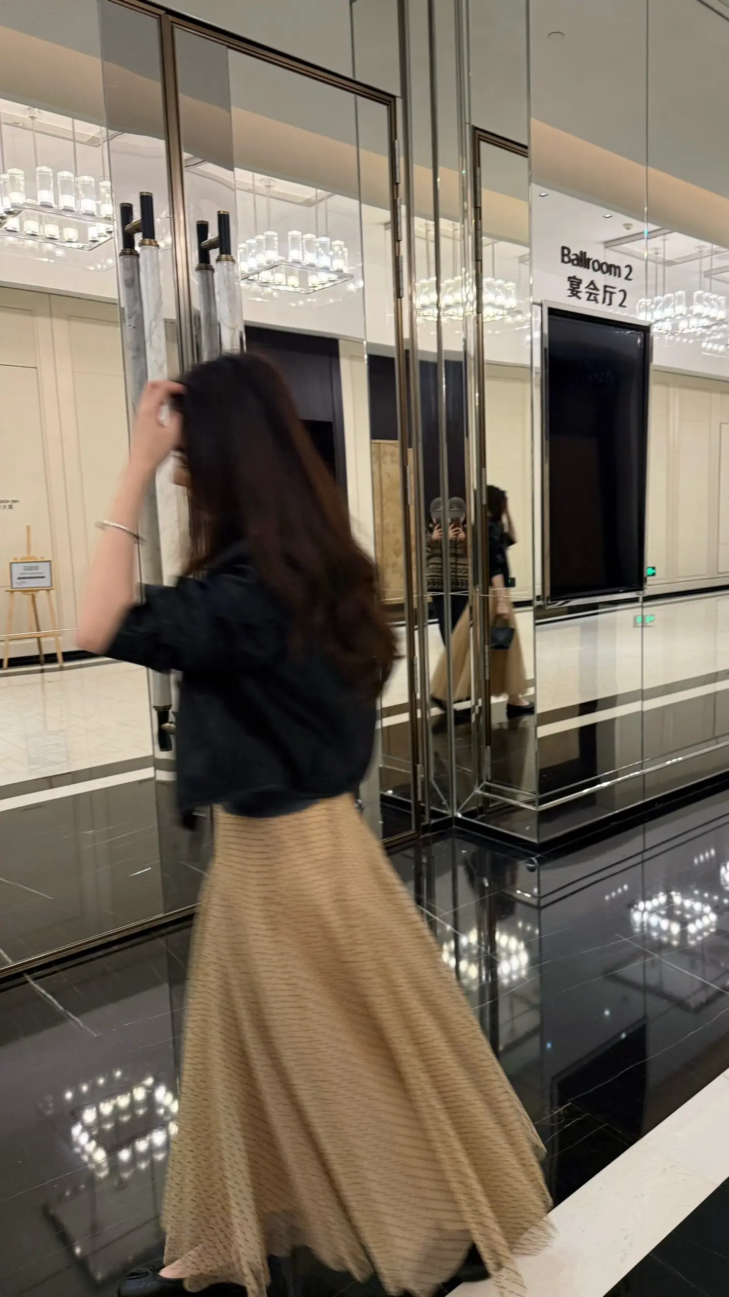 OOTD时尚穿搭今天穿什么ootd灰色长袖衬衫搭配黑色短裙,职业高级感拉满