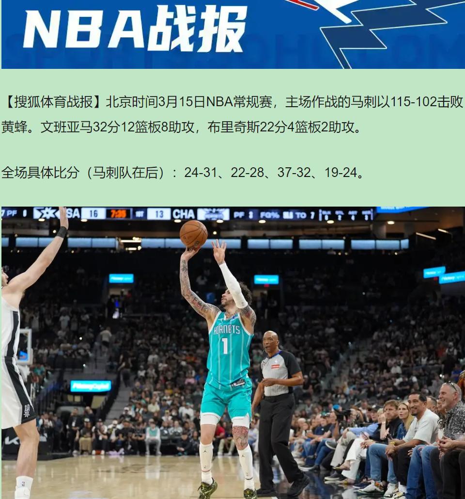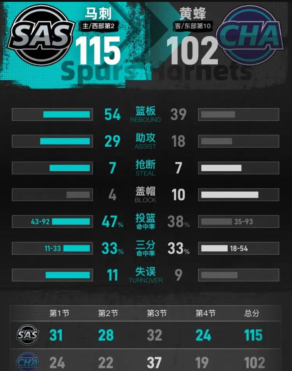 看完115-102,我关掉直播的第一反应不是文班亚马多炸裂,而是心疼黄蜂那群年轻