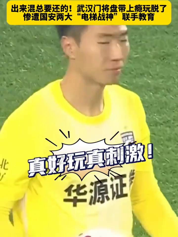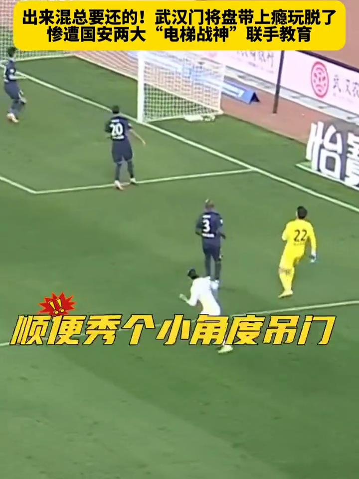 出来混总要还的!武汉门将盘带上瘾玩脱了,惨遭国安两大"电梯战神"联手教育。 先来看看武汉三镇门将方镜淇,上半场这次出击,你们退下看我表演,戏耍王刚还成功了,真好玩真刺激!于是尝到甜头的小方下半场还想故技重施,这次王刚表示不惯着,惨遭国安两大"电梯战神"联手教育,还带上张玉宁一起来,顺便秀个小角度吊门,这不玩脱了吧?兄弟你说他怎么敢的呀?