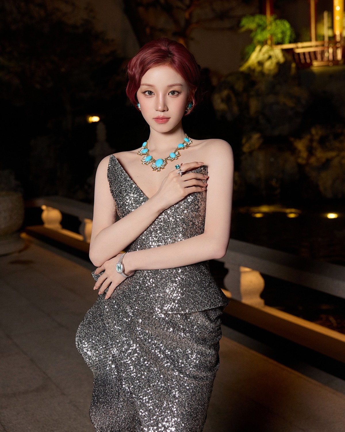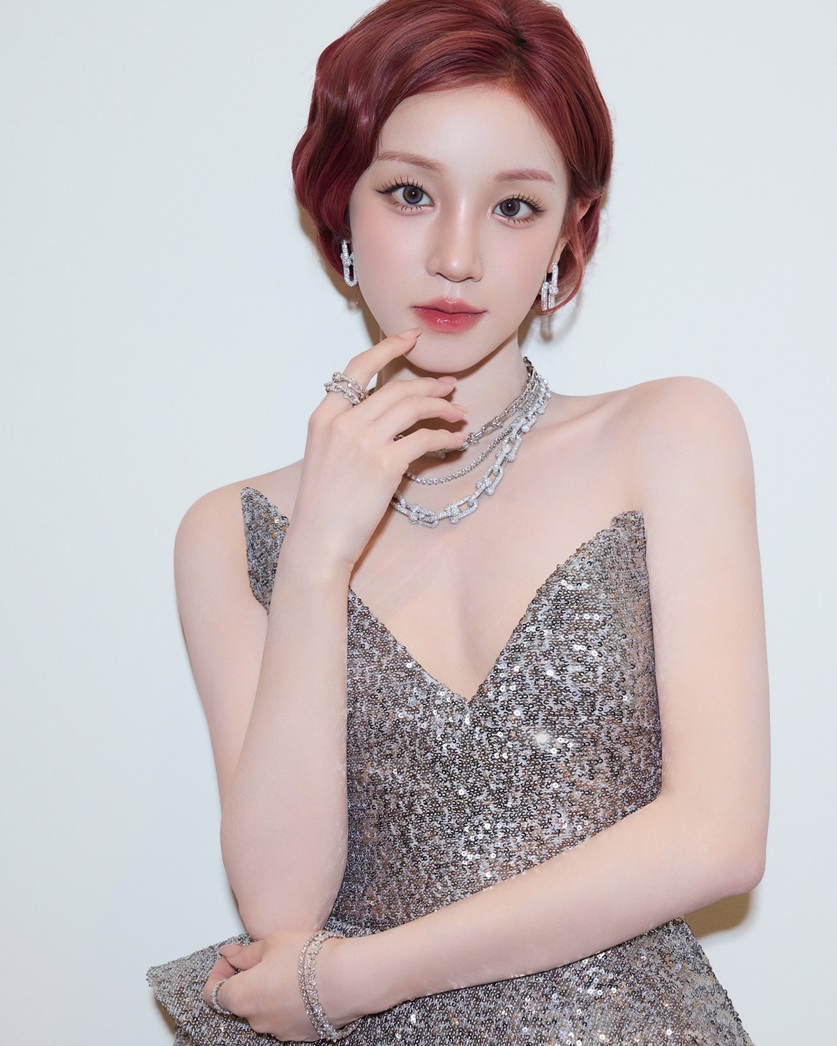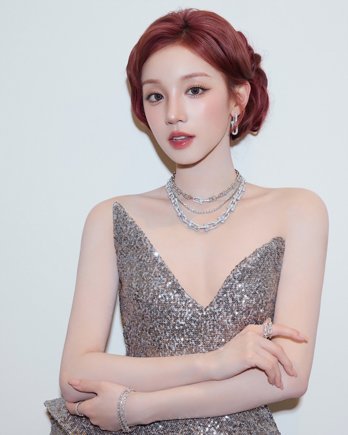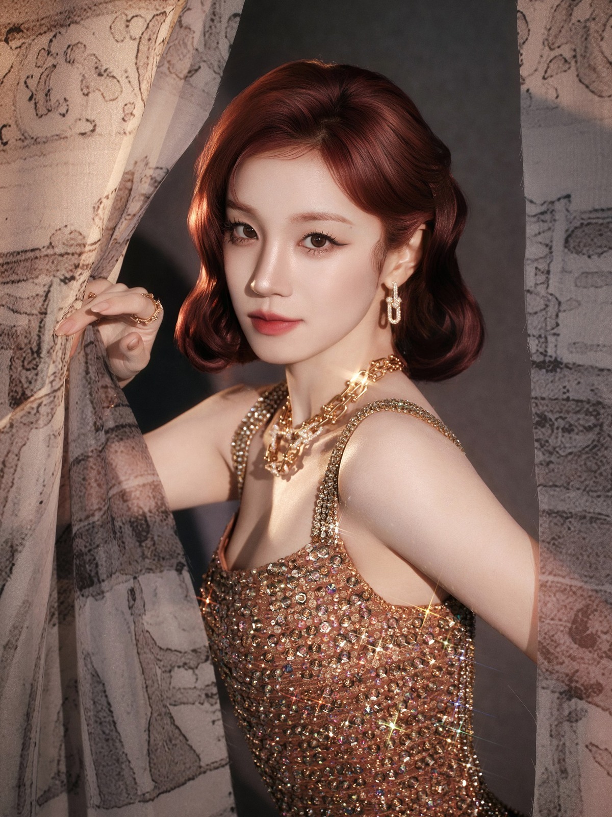宋雨琦这组鎏金港风造型,直接美到封神!✨红棕复古卷发配满钻礼裙,一颦一笑都是