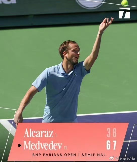 阿尔卡拉斯遭赛季首败梅德韦杰夫重返印第安维尔斯决赛