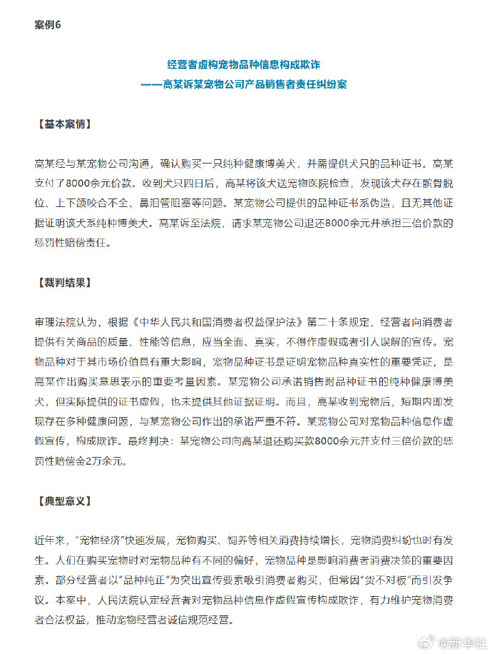这批案例还包括“张某诉某化妆品店服务合同纠纷案”“高某诉某宠物公司产品销售者责任纠纷案”。(新华社)