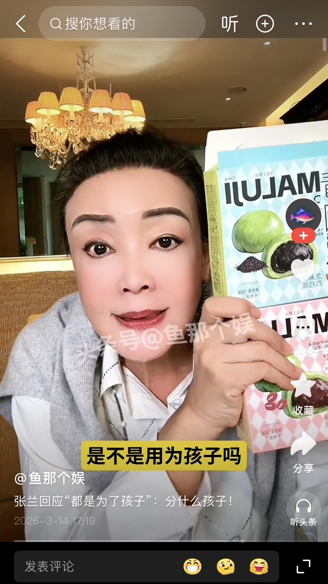 张兰谈“一万多个孩子”:为了孩子,我才拼命干企业 都是为了孩子,您说的啊,否则不会这么拼。 我们孩子——麻六记的孩子,有一万多个,您知道吗? 我们做企业30多年,没分过一分钱红利。咱有点盈余,就开个店。最近不又开了两家店吗? 为了哪个孩子?那肯定是咱麻六记的孩子啊!麻六记这一万多个孩子,咱是: • 麻六记大店,已经五十家了; • 自营店还有一百多家酸辣粉店; • 还有小麻溜店; • 再加上工厂。 这么多孩子,当然得为孩子呀。 孩子的工资您不发吗? 孩子的学费您不交吗? 孩子的妈妈您不养吗?对不对? 做企业多难啊!您敢动企业一分钱吗? 不是剁你手的问题,是给你连根拔起。 是要用来喂孩子吗?得分什么孩子是不是? 那麻六记不都是孩子吗? 麻六记的孩子,就是让我最感动的一句话: “您当年培养的小崽儿,现在都长大了。” “您歇歇吧。” 这就是我养的小崽儿,一万多个小崽儿啊,对不对? 张兰 麻六记 汪小 菲