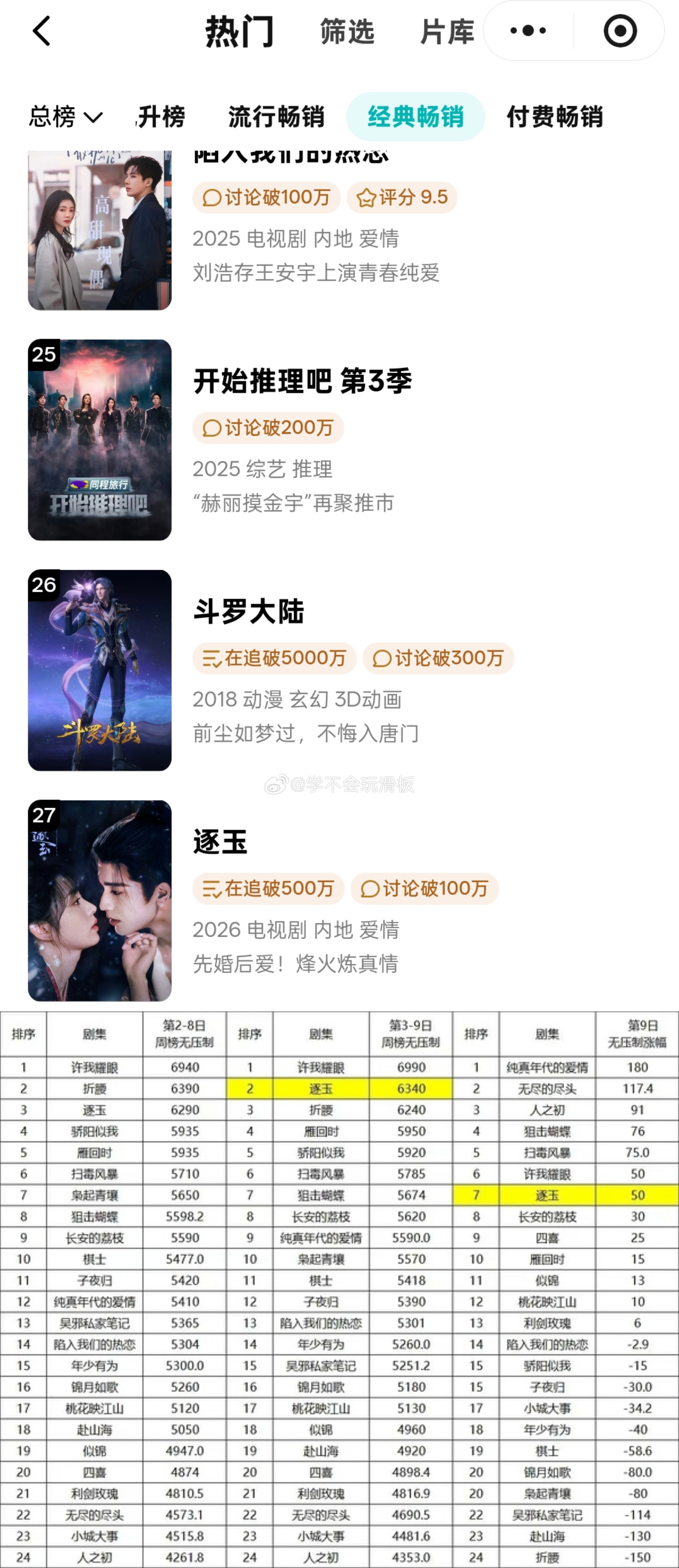 张凌赫、田曦薇《逐玉》进腾讯视频拉新年榜,第27名,9天进年榜。